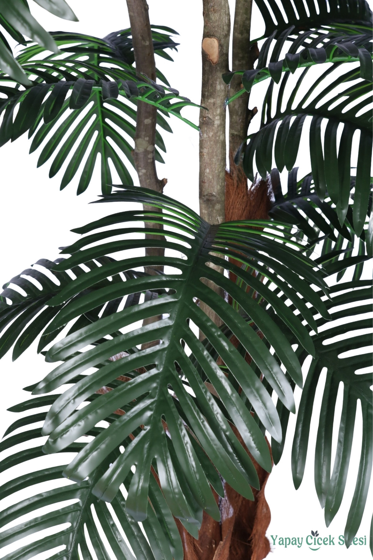 Areka Ağacı Görünümü: Doğal areka palmiyesi formunda tasarlanan yapraklar, koyu yeşil tonları ve ince uzun yapısıyla tropikal bir atmosfer yaratır.