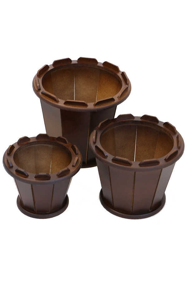 Ahşap Saksı 3lü Set Sepet Model Kahverengi Özellikleri;