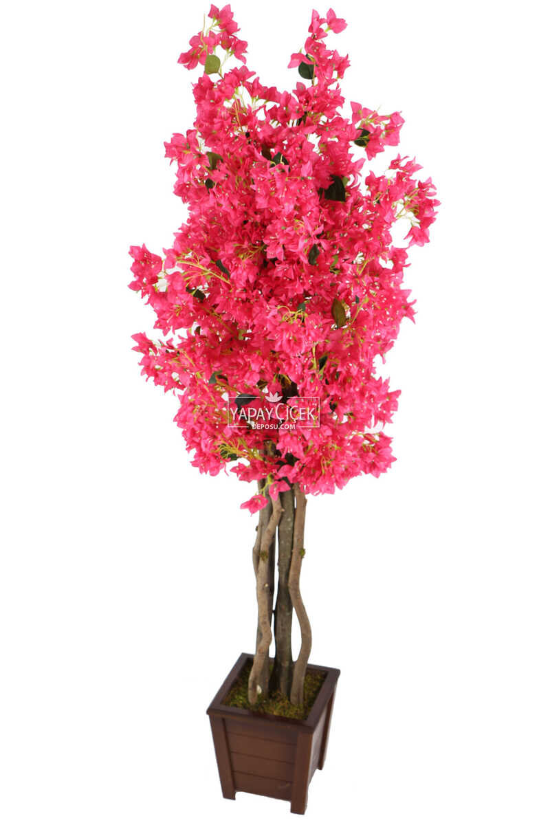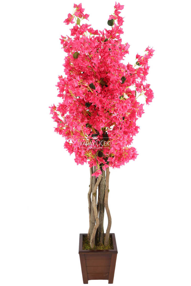 Paket içeriği: 1 adet ahşap saksılı 1.85 metre boyunda fuşya renkli begonvil çiçekli yapay ağaç.