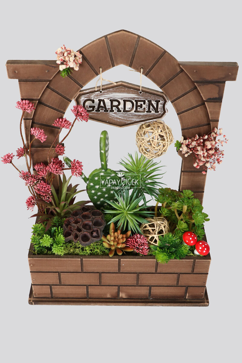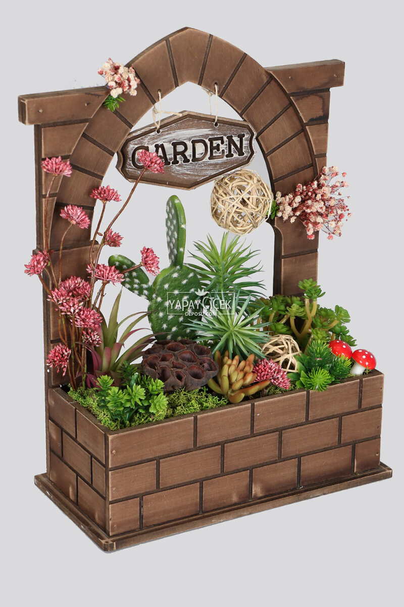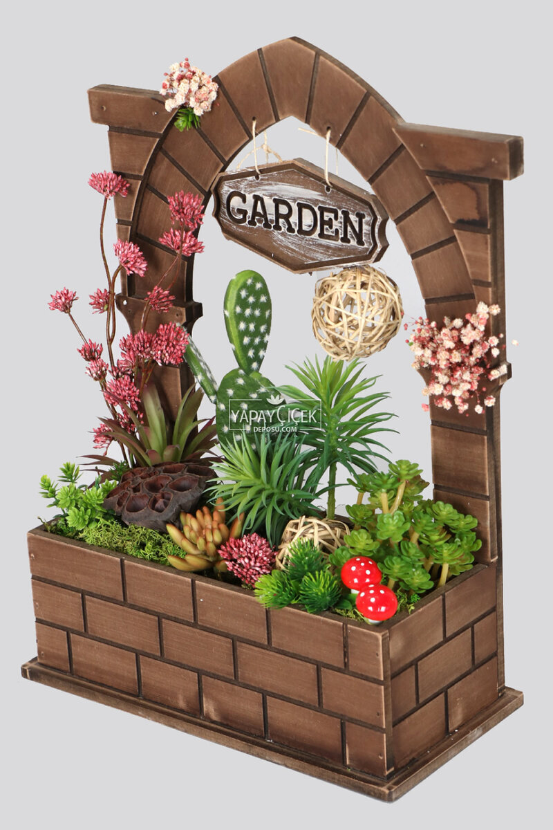 Ahşap Saksıda Yapay Botanik Bahçesi Sukulent Model Özellikleri;