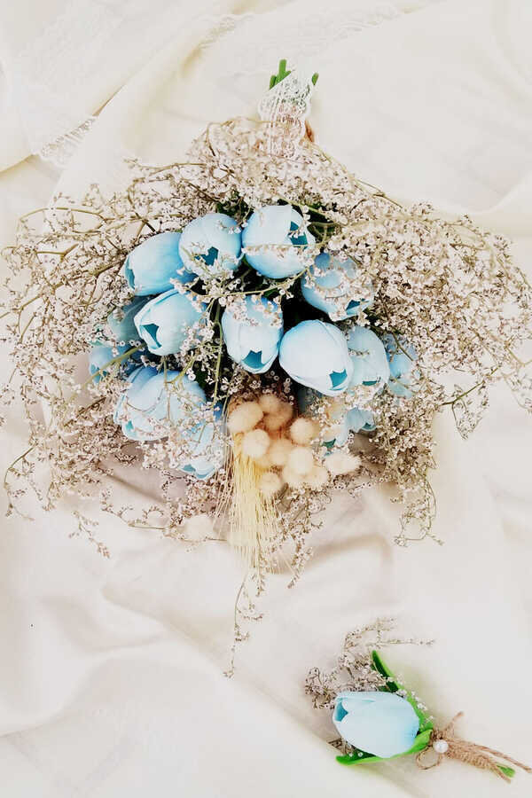 Bebe Mavi Islak Lale Kuru Çiçek Şöleni 2li Set;Siparişleriniz aynı gün içinde kargoya verilir. Bebe Mavi Islak Lale Kuru Çiçek Şöleni 2li Set stoklarımızda bulunmaktadır.Bebe Mavi Islak Lale Kuru Çiçek Şöleni 2li Set;Buket Uzunluğu: 45 cmBuket genişliği: 40 cmÇiçek İçeriği: Islak Lale, kuru ot, yapraklar bulunmaktadır.Paket içeriği: 1 adet gelin buketi ve damat yaka çiçeği Bebe Mavi Islak Lale Kuru Çiçek Şöleni 2li Set; Beyaz Güller Cipso Kuru Çiçek Şöleni Gelin Çiçeği 2li Set tarafımızdan tanzim edilmiştir. Bebe Mavi Islak Lale Kuru Çiçek Şöleni 2li Setinde kullandığımız yapay çiçekler kaliteli kumaştan üretilmiştir. Asla köpük yada kağıt değildir. Her bir Bebe Mavi Islak Lale Kuru Çiçek Şöleni 2li Set’inin çok şaşalı muhteşem bir görüntüsü vardır. Alışılmışın dışında bir gelin çiçeğidir. Farklı olmak isteyen gelin adaylarımız için bulunmaz bir gelin çiçeğidir. Bu mutlu gününüzde sevincinize sevinç katacak ve bütün gelinlerden farklı olacaksınız. Bir ömür mutluluklar dileriz.Gelin Buketleri Kişiye özel hazırlandığı için iadesi alınamaz.