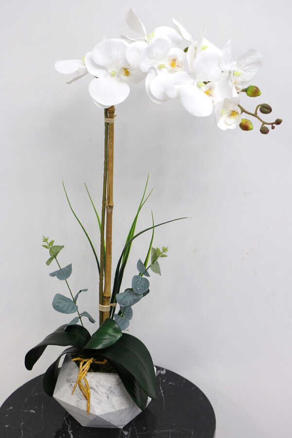 Beton Geometrik Saksıda Tekli Yapay Islak Orkide Tanzimi; Siparişleriniz aynı gün içinde kargoya verilir. Beton Geometrik Saksıda Tekli Yapay Islak Orkide stoklarımızda bulunmaktadır. Yapay orkide, Yapay Plastik Saksı Orkide,Yapay Beton Saksı Islak Orkide Toptan Yapay Çiçek, Yapay Çiçek toptancıları, Renkli yapay orkide, Hediyelik Saksıda Yapay Orkide Beton Geometrik Saksıda Tekli Yapay Islak Orkide Özellikleri; Çiçek ismi: Beton Geometrik Saksıda Tekli Yapay Islak OrkideRengi: Fuşya benekliÜrün Kodu: geo-tekli-orkide-beyazÜründe bulunan dal sayısı: 1Yapay Orkide Yüksekliği Saksı Dahil: 65 cm (Orkide dalı bükülmeden 80 cm gelmektedir)1 dalda bulunan yapay orkide çiçek sayısı: 8 adet Orkide çiçeklerin çapları: 7 tanesi 9 cm çapında, 1 tanesi 6 cm çapındadır.Saksılı orkide tanzimi genişliği: 30 cm Handmade Geometrik Beton Saksı Özellikleri; Beton Saksı Yüksekliği: 10.6 cm Ayrıntılı beton saksı ölçüleri son resimde mevcuttur.El yapımı 1. kalite mukavemet gücü yüksek betondur. Şekli bozuk kalıba tam oturmamış gözenekleri çıkmış saksıları titizlikle eleyip hatasız 1.kalite olanlar gönderilmektedir. Dış mekan kullanımına uygundur. Beton Saksılar çizilmeye ve kırılmaya son derece dayanıklı malzemedir.Saksı üzeri doğal yosun ile kaplanmıştır. Orkide dalı ile birlikte yapay yeşillik çimen sazı ve yapay okaliptus dallar ile ürüne zenginlik katılmıştır. Kalitesi ve şıklığı ile mekanınıza hava katacaktır. Hediye de yapabileceğiniz Yapay Orkide Tanzimleri beğeninize sunulmuştur.