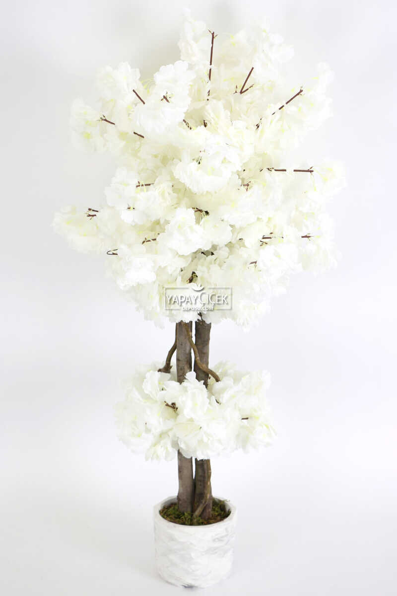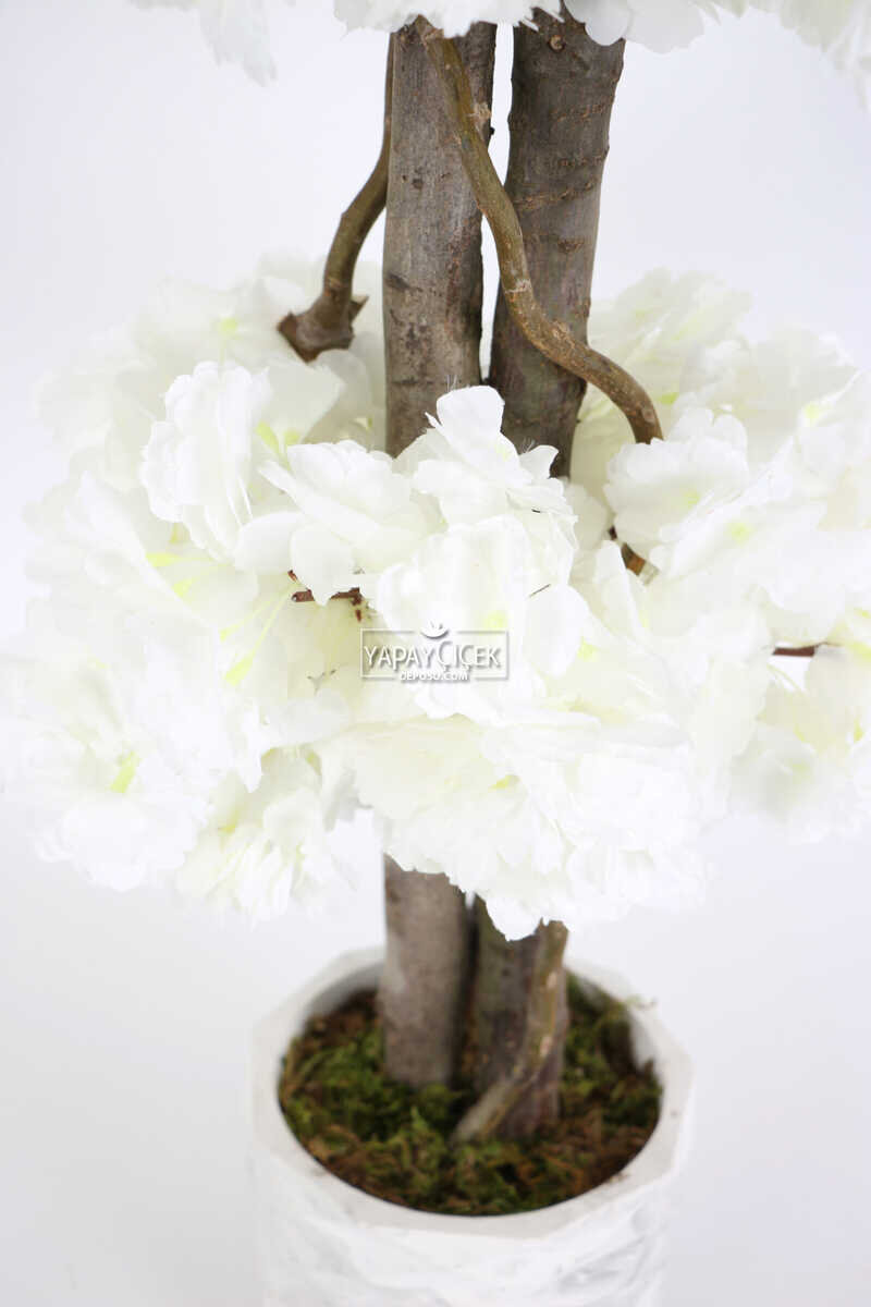 Beton Saksıda Yapay Bahar Dalı Ağacı 105 cm Beyaz
