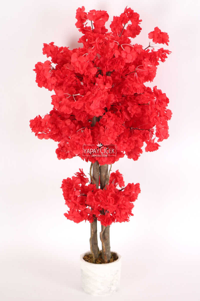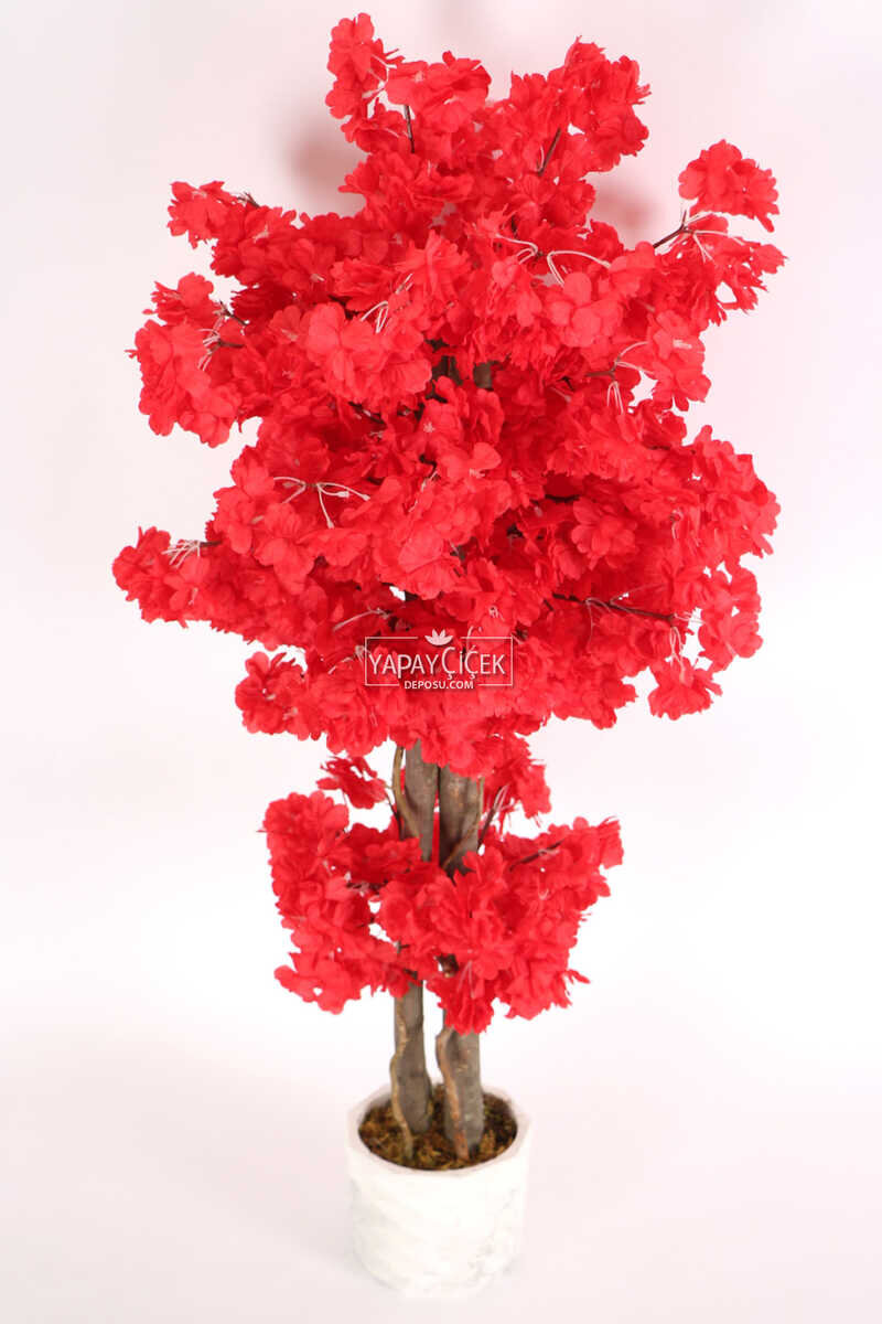Beton Saksıda Yapay Bahar Dalı Ağacı 105 cm Kırmızı