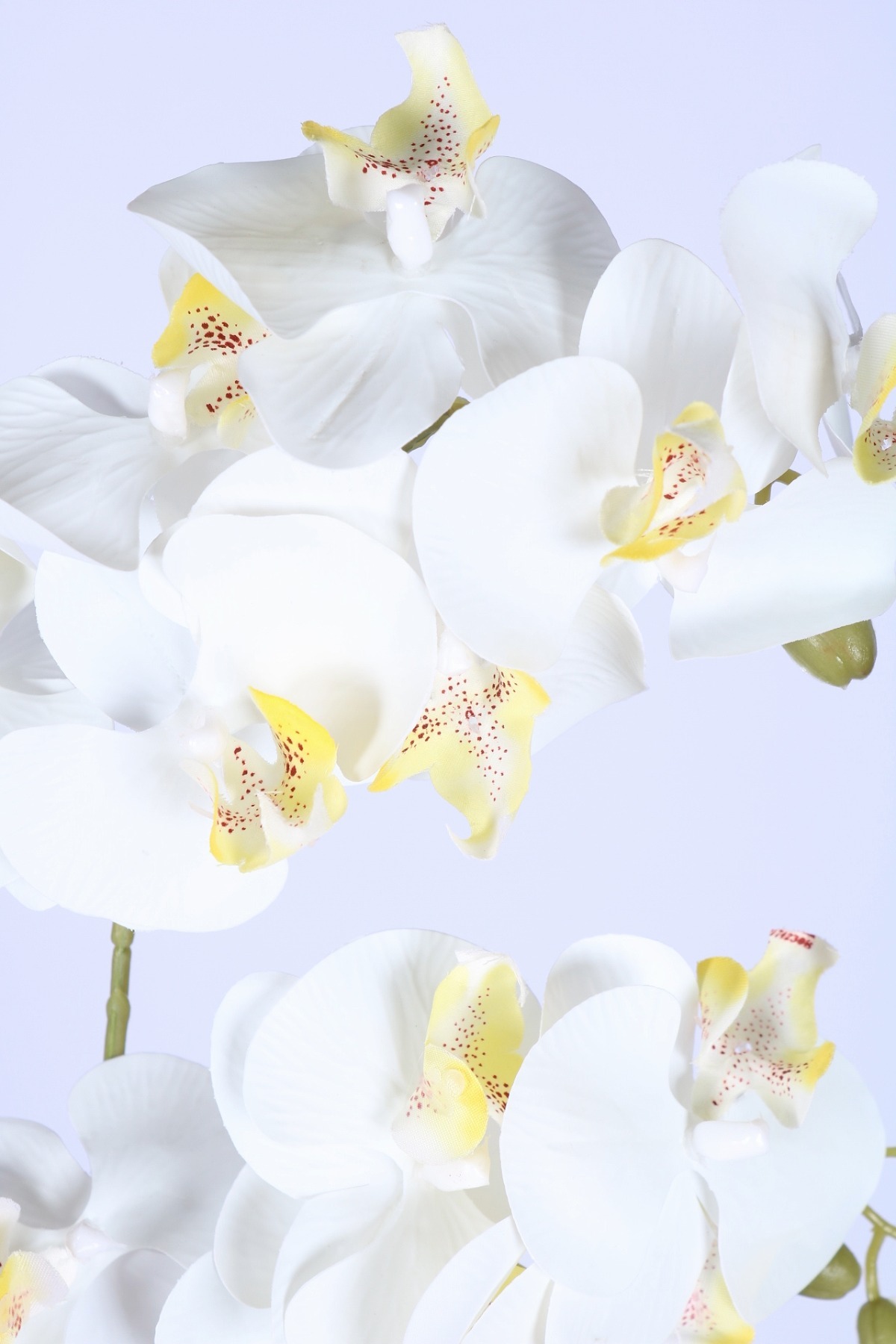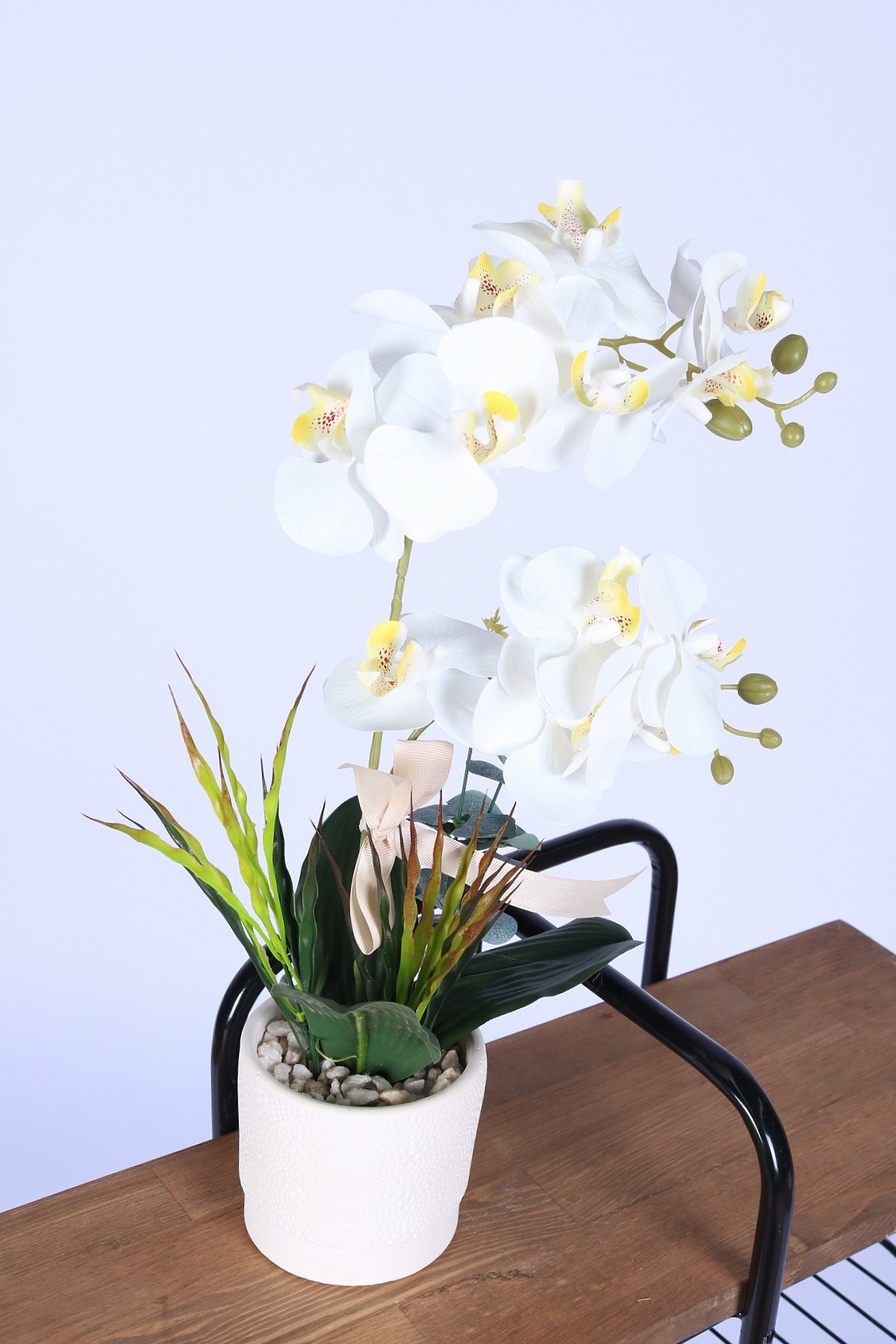 Dekoratif Beton Saksıda Yapay 2 Dal Orkide Çiçeği Beyaz