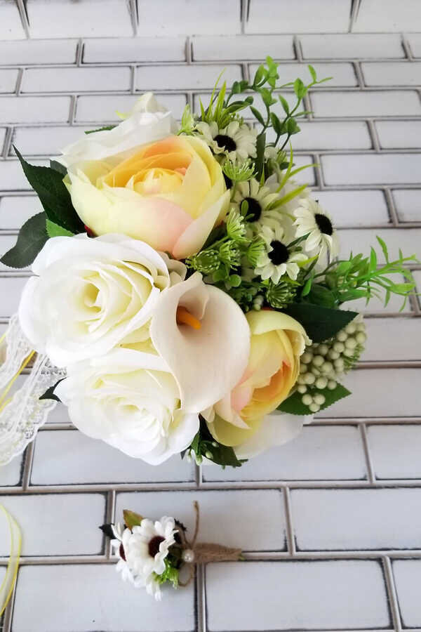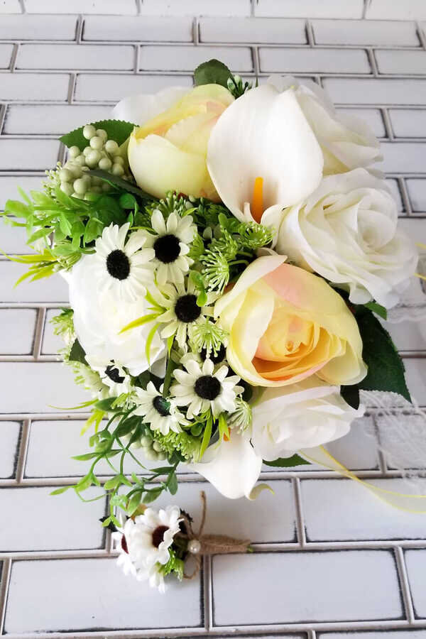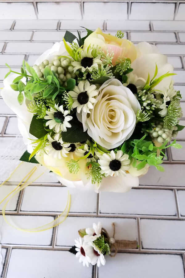 Gelin Buketi Dios Beyaz Gül Sarı Şakayık va Papatyalar Kokteyli 2li Set;Siparişleriniz aynı gün içinde kargoya verilir. Gelin Buketi Dios Beyaz Gül Sarı Şakayık va Papatyalar Kokteyli 2li Set stoklarımızda bulunmaktadır.Gelin Buketi, Gelin Çiçeği, 2018 Gelin Buketi Fiyatları, Gelin Eli, Kaliteli Gelin Çiçeği, Damat Yaka Çiçeği, Şakayık Gelin Buketi, Toptan Gelin Buketi, Toptan Gelin Eli, Beyaz Gelin Buketi, Gelin El Çiçeği, Gelin Buketi ModelleriGelin Buketi Dios Beyaz Gül Sarı Şakayık va Papatyalar Kokteyli 2li Set;Buket Yüksekliği: 35 cmBuket Çapı: 30 cmÇiçek İçeriği: İri şakayık güller, iri açmış güller, gala çiçekleri, papatyalar cipsolar, pıtırcıklar, yeşil dallar, ara dallar, yapraklar ve kurdeleler bulunmaktadır.Paket içeriği: 1 adet gelin buket ve damat yaka çiçeği Gelin Buketi Dios Beyaz Gül Sarı Şakayık va Papatyalar Kokteyli 2li Set; Gelin Buketi özenle tarafımızdan tanzim edilmiştir ve dolu doludur. Bu gelin çiçeğini elde edebilmek için piyasada 40-50tl ye satılan demetler bozularak bir araya getirilmiştir. Göz nuru ve emek ürünüdür. Gelin Buketinde kullanılan çiçekler kesinlikle; kağıt, köpük yada latekse değildir. Gelin Çiçeği 1. Sınıf kumaştan üretilmiş olup siz sakladığınız sürece bir ömür size arkadaşlık edecektir. Gelin buketlerimizde kesinlikle bozulma, dağılma, yıpranma vb. durumlar olmaz. Çiçekler özenle ahenk ve uyum içerisinde bir araya getirilmiştir. Gelin Buketleri tamamı ile kendi özel tasarımımızdır. Gelin çiçeği yapay çiçeklerle tasarlandığı için çok uzun yıllar hatıralarınıza şahitlik eder ve nesilden nesle aktara bilirsiniz.Gelin Buketleri Kişiye özel hazırlandığı için iadesi alınamaz.