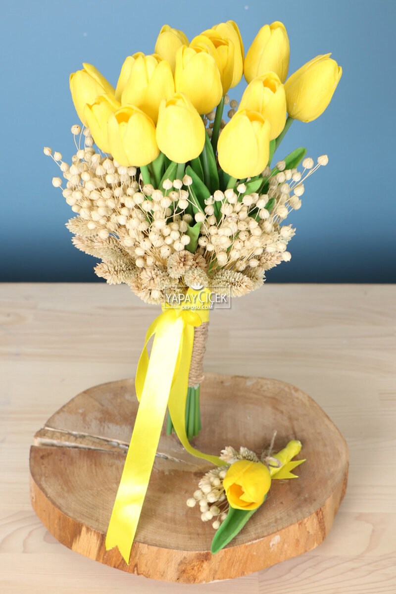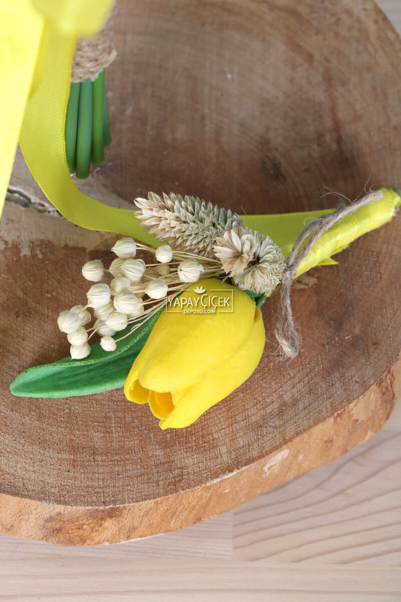 Paket içeriği: 1 adet gelin çiçeği ve damat yaka çiçeği Islak Lale Gelin Çiçeği 2li Set Sarı