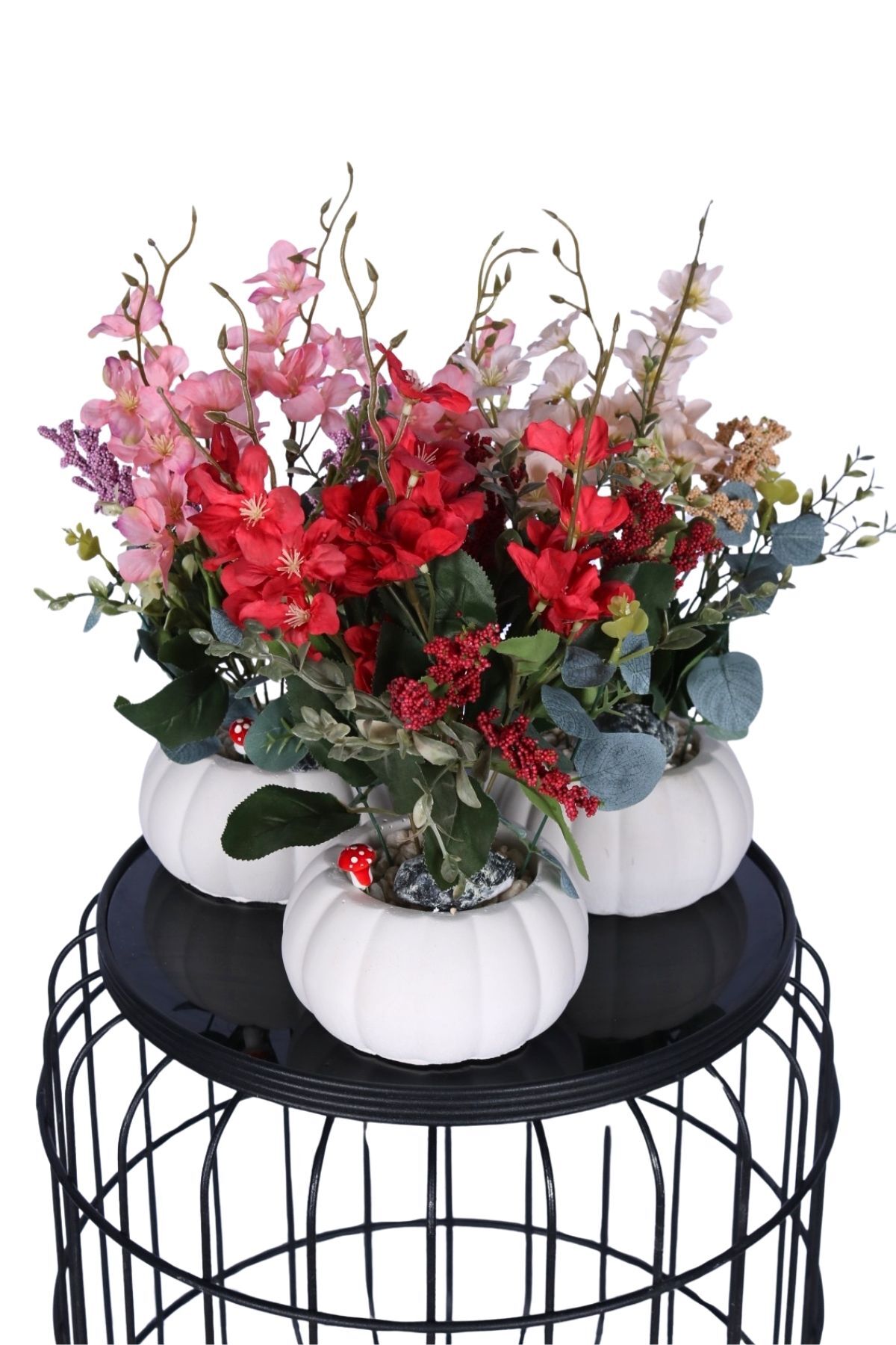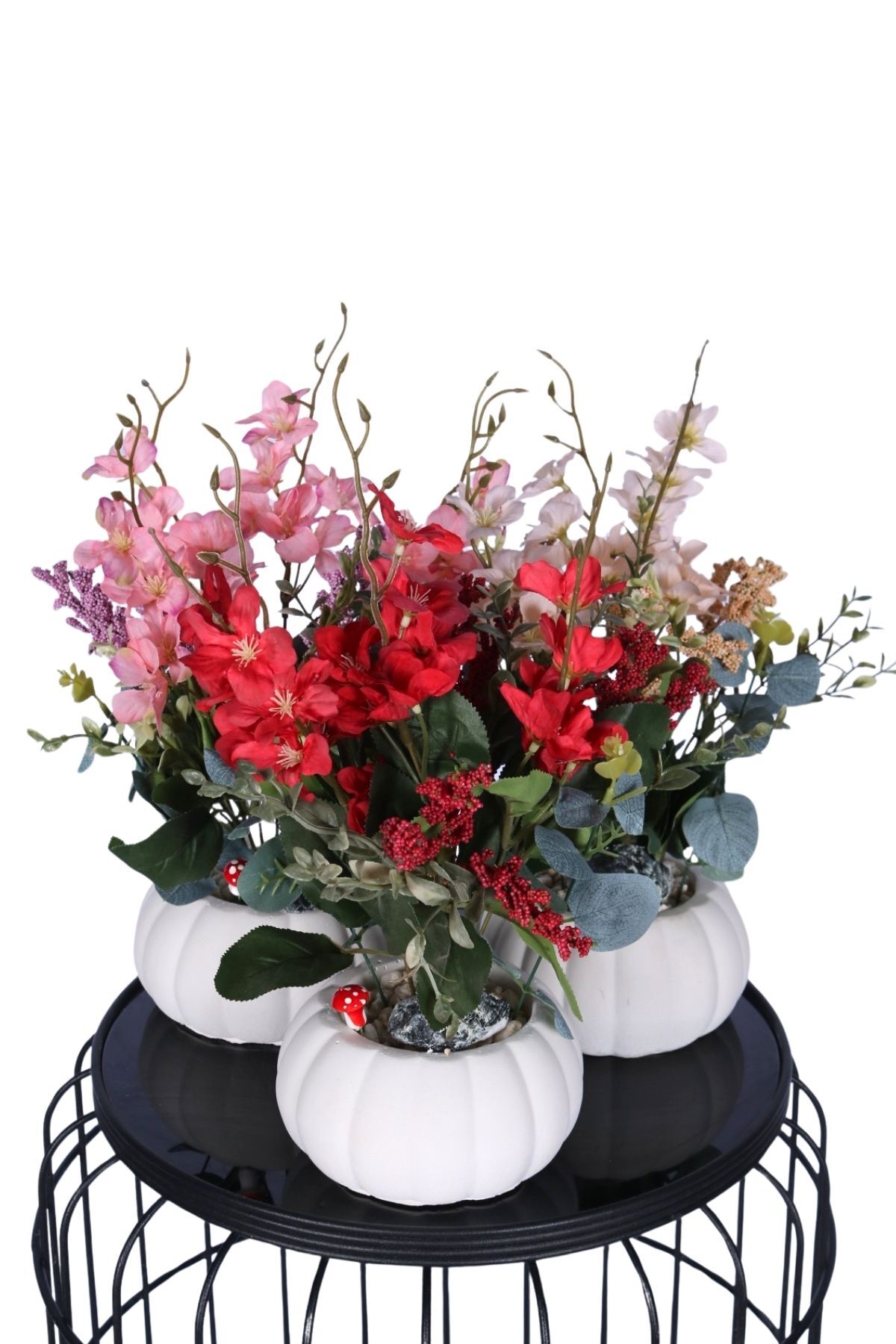 Küçük Kabak Beton Saksıda Yapay Yasemin Çiçeği 3lü Set