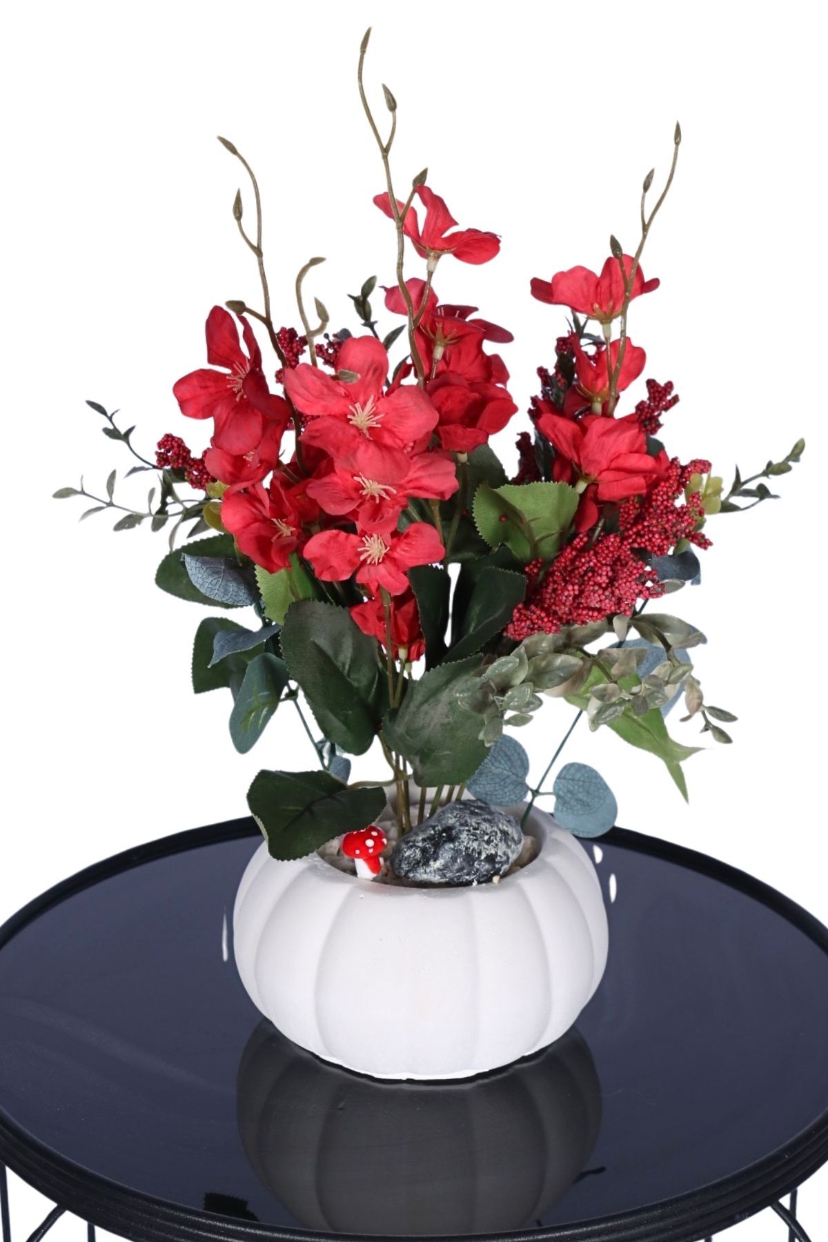 • Özel Detaylar: Saksı içerisinde dekoratif taş ve minik mantar figürü ile zenginleştirilmiş tasarım.