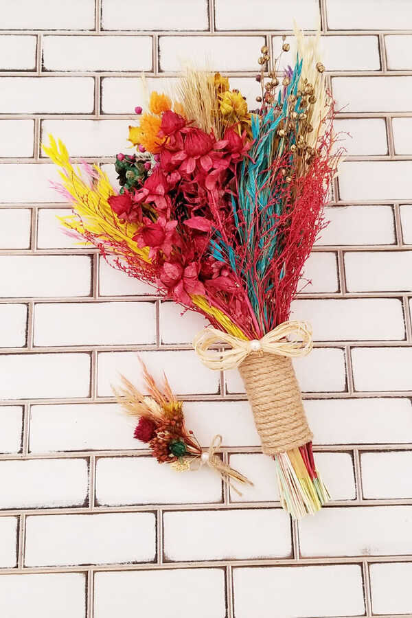 Siparişleriniz aynı gün içinde kargoya verilir. Kuru Çiçek Gelin Buketi Yoko Naturel Kırmızı Turuncu Sarı 2li Set stoklarımızda bulunmaktadır.