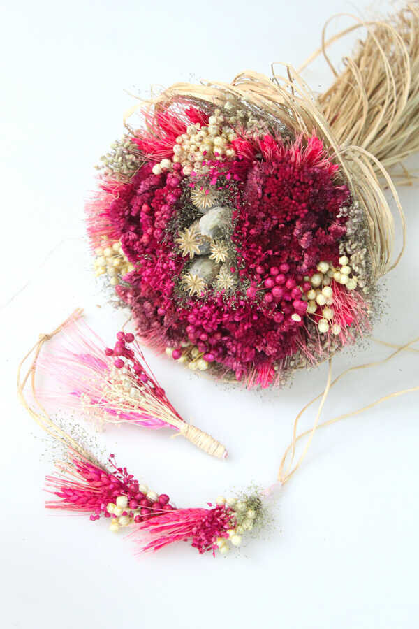 Kuru Çiçek Gelin Çiçeği Pembe Şöleni 3lü Set Özellikleri;· Buket Yüksekliği: 35 cm· Buket Çapı: 30 cm· Çiçek İçeriği: Doğal gerçek kuru çiçeklerden tanzim edilmiştir.Gelin tacı hediye...Paket içeriği: 1 adet gelin buketi, gelin tacı ve damat yaka çiçeğiGelin Buketleri Kişiye özel hazırlandığı için iadesi alınamaz.