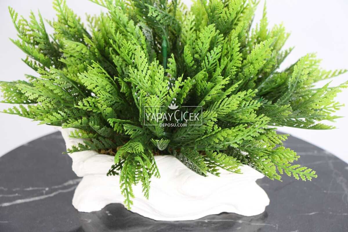 Yapay Mazı Çamı, el yapımı 1. kalite beton saksı üzerine konumlandırılmıştır. Şekli bozuk kalıba tam oturmamış gözenekleri çıkmış saksılar titizlikle elenip hatasız 1.kalite olanlar gönderilmektedir. Tanzimde kullanılan bitki yapay olduğundan güneşten, yağmurdan, çamurdan, kardan etkilenmez ve temizliğini çok kolay yapabilirsiniz.