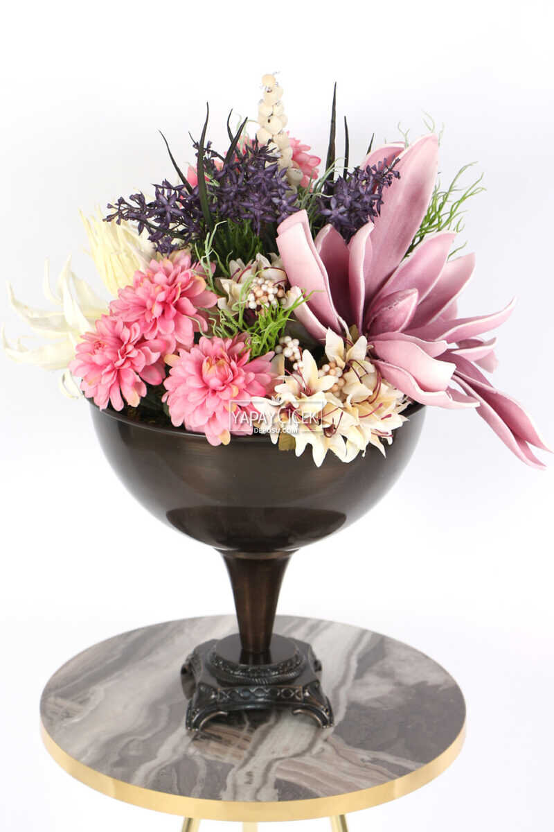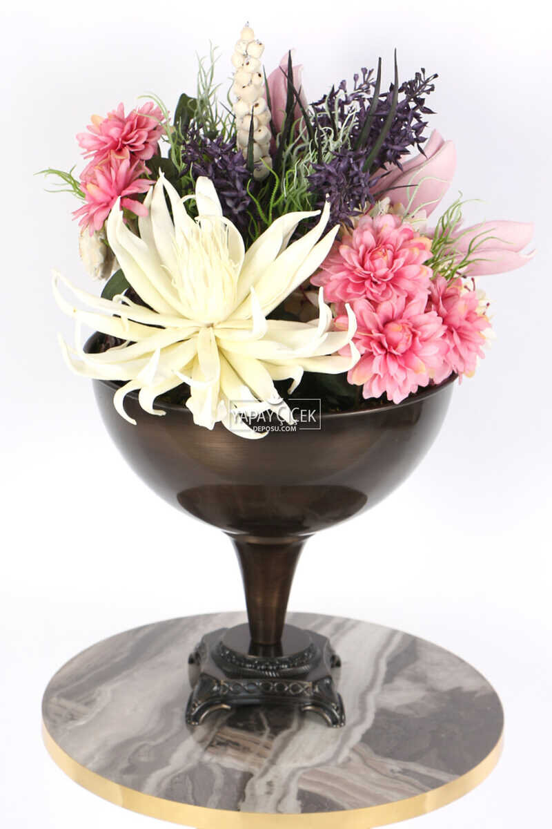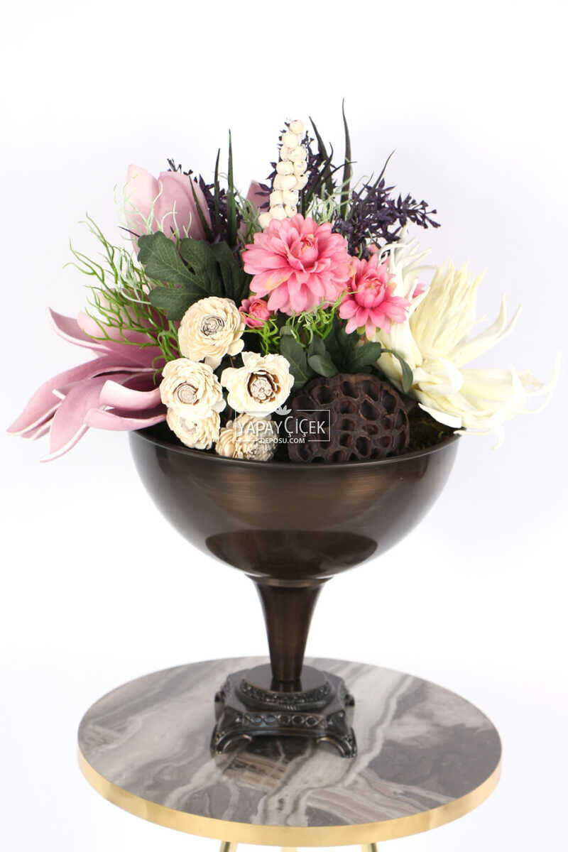 kız isteme, hediyelik, dekoratif süs, dekoratif vazo, dekor, dekoratif aranjman, metal saksılı çiçek, salon çiçeği, nişan masası çiçeği