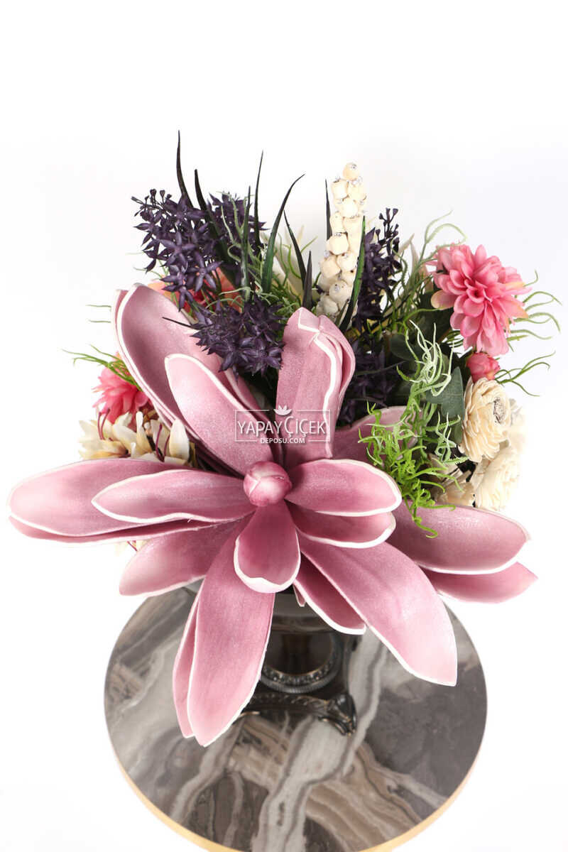 Lütfen üzerinde birkaç çiçek bulunan ucuz aranjmanlar mukayese etmeyiniz. Vazo üzerinde kullanılan çiçekler 1. Kalite çiçeklerden oluşmaktadır. Vazo üzerinde bulunan çiçekler ve yeşillikler yapay olduğundan çok uzun ömürlüdür en küçük dağılma yada bozulma olmaz. Bu sebepten temizliği de çok kolaydır. Salon çiçeği, oturma odası çiçeği, kız isteme çiçeği, nişan masası çiçeği, ofis çiçeği olarak kullanımı yaygındır.