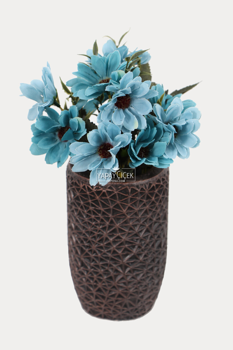 Lüx Beton Retro Tombul Vazoda Yapay Papatya Dekoru 25 cm Mavi