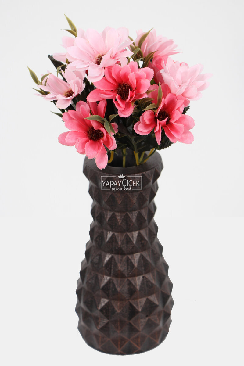 Lüx Beton Vintage Vazoda Yapay Papatya Dekoru 30 cm Narçiçeği-Pudra