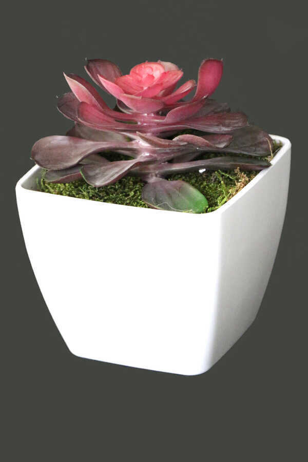 Yapay succulent, melamin saksı üzerine konumlandırılmıştır. Tanzimde kullanılan bitki yapay olduğundan güneşten, yağmurdan, çamurdan, kardan etkilenmez ve temizliğini çok kolay yapabilirsiniz. Saksı üzeri doğal yosun ile kaplanmıştır.Dış mekan kullanımına uygundur. Melamin Saksılar çizilmeye ve kırılmaya son derece dayanıklı malzemedir. Plastik ürünler gibi sağlığa hiçbir zararı yoktur. Gıda sektöründe de melamin malzemeler sağlığa zararı olmadığı için kullanılmaktadır.