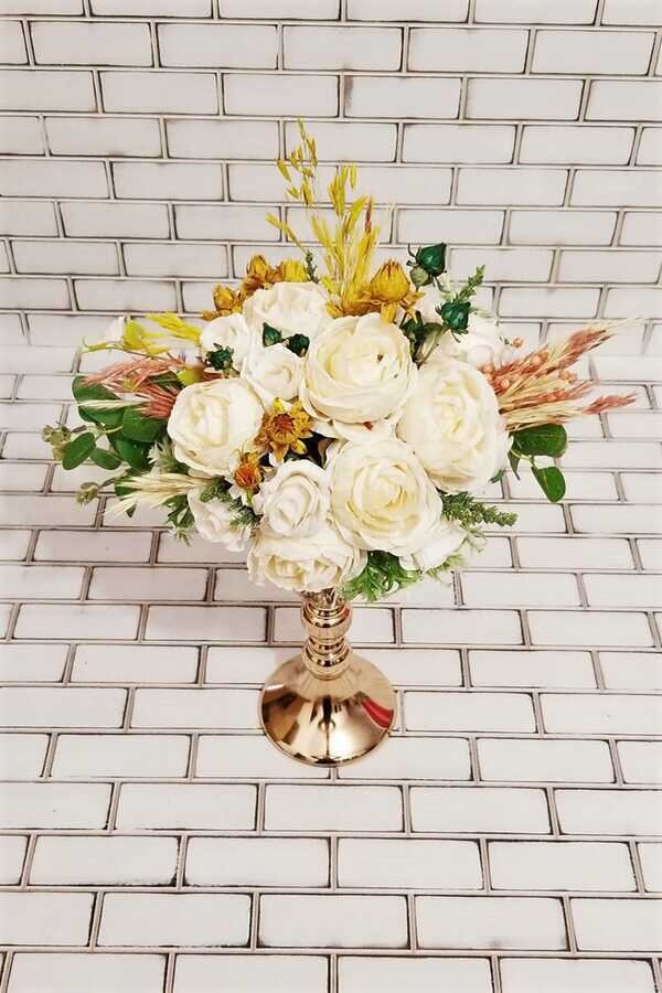 Siparişleriniz aynı gün içinde kargoya verilir. Merlin Beyaz Şakayık Güller ve Kuru Çiçek Şöleni Dekor Kız İsteme Hediyelik Aranjman Beyaz Sarı stoklarımızda bulunmaktadır. kız isteme, hediyelik, dekoratif süs, dekoratif vazo, dekor, dekoratif aranjman, metal saksılı çiçek,