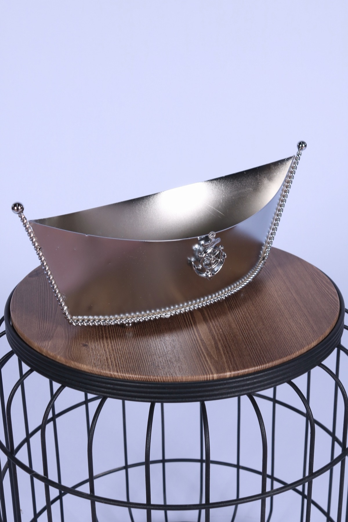 Metal Dekoratif Çiçeklik Sunumluk Büyük Kayık Gümüş