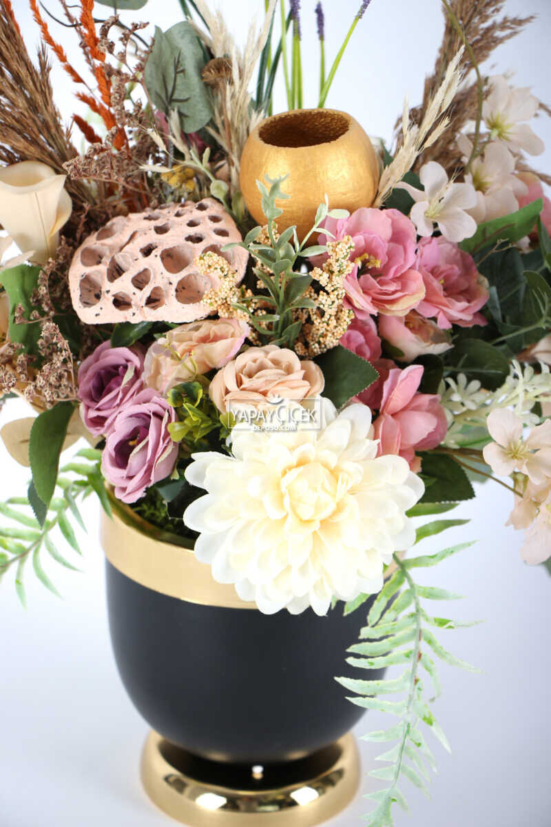 Çiçek ismi: Metal Vazoda Lüx Yapay Çiçek Tanzimi Alaçam