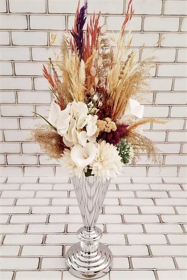 Siparişleriniz aynı gün içinde kargoya verilir. Neda Beyaz Kasımpatı Gala Ortanca Kuru Çiçek Şöleni Dekor Kız İsteme Hediyelik Aranjman Beyaz Bej stoklarımızda bulunmaktadır. kız isteme, hediyelik, dekoratif süs, dekoratif vazo, dekor, dekoratif aranjman, metal saksılı çiçek,