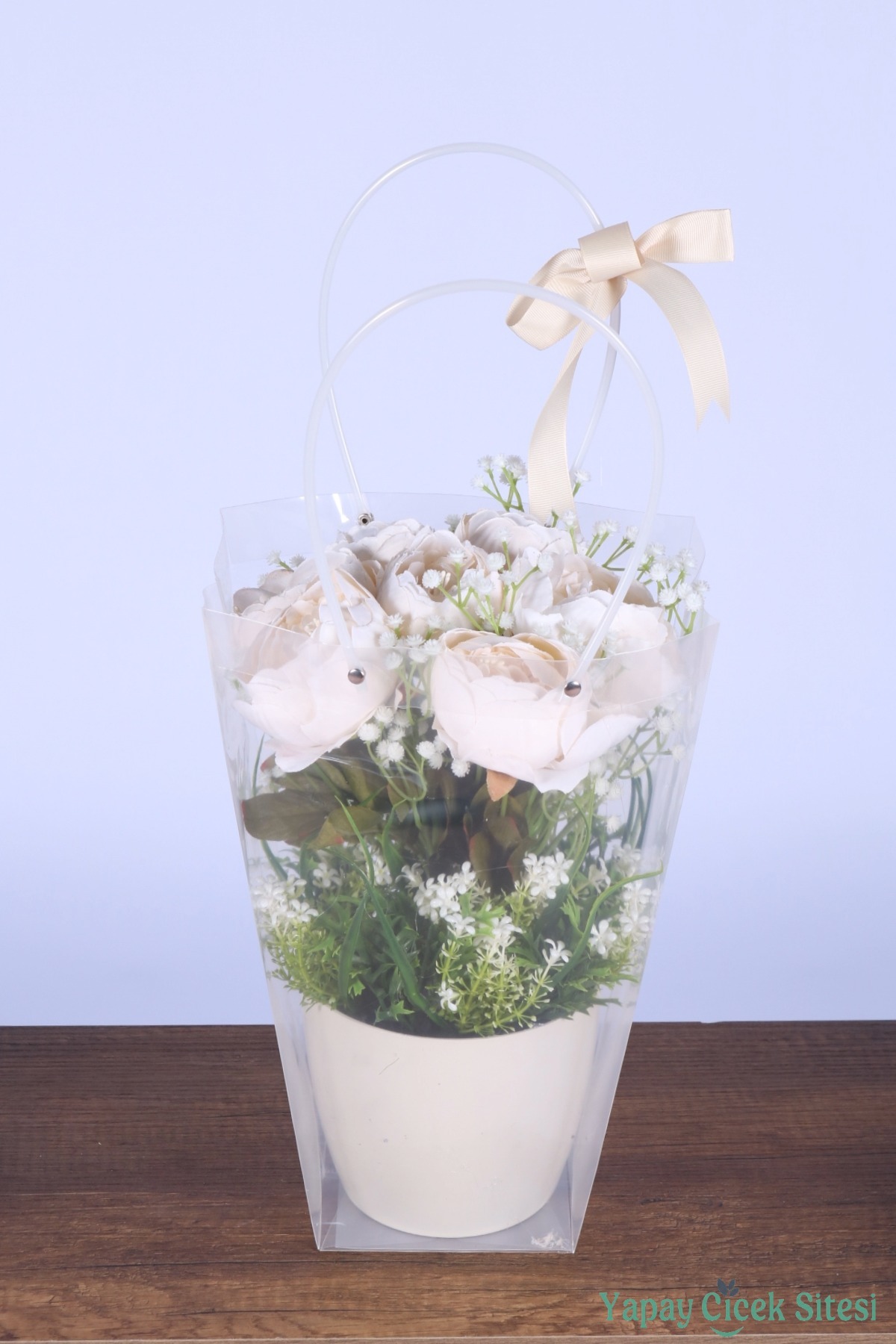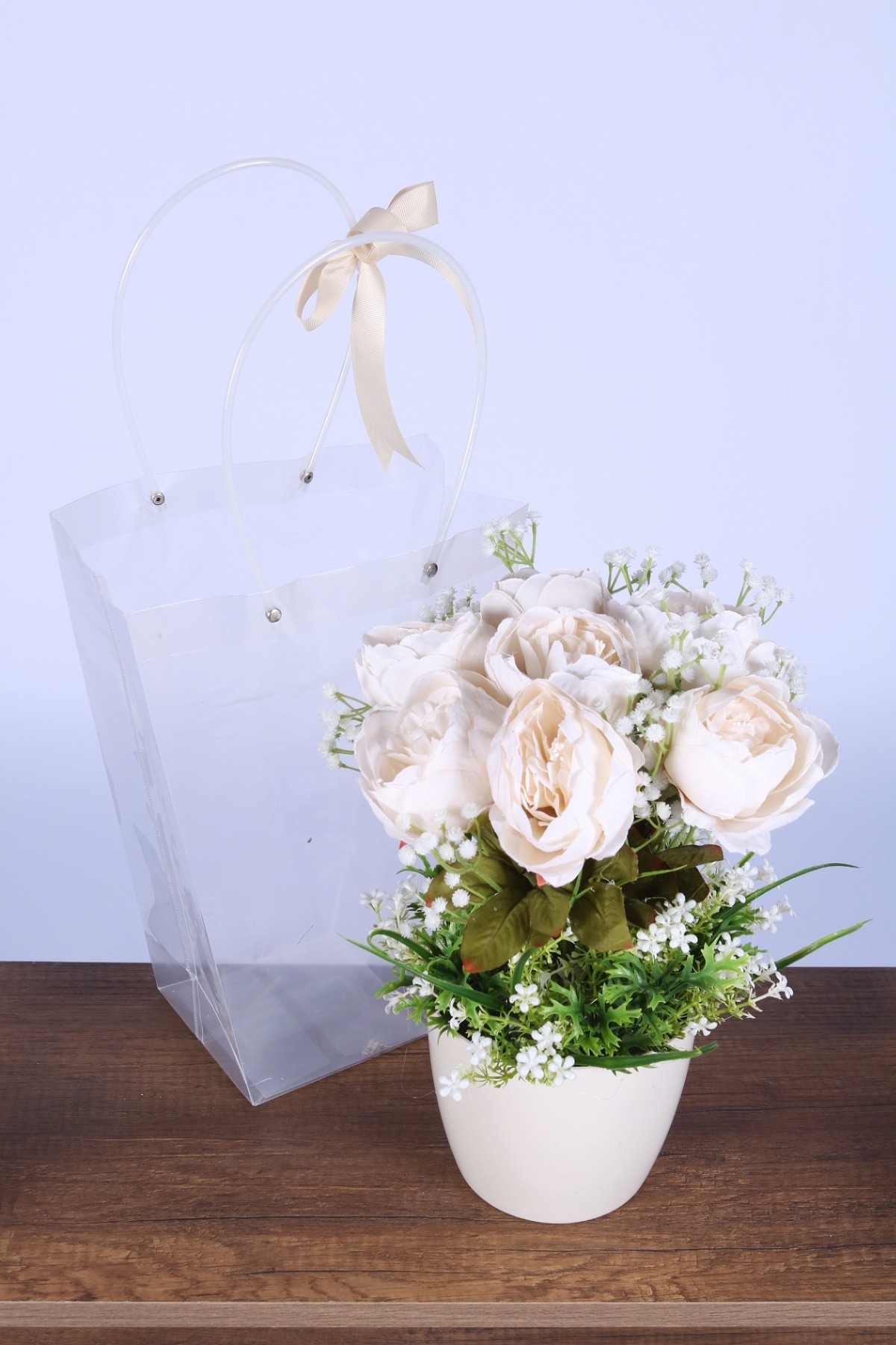 Saksılı Çiçek Aranjmanı (Şeffaf Çanta Hediyeli) Model 9