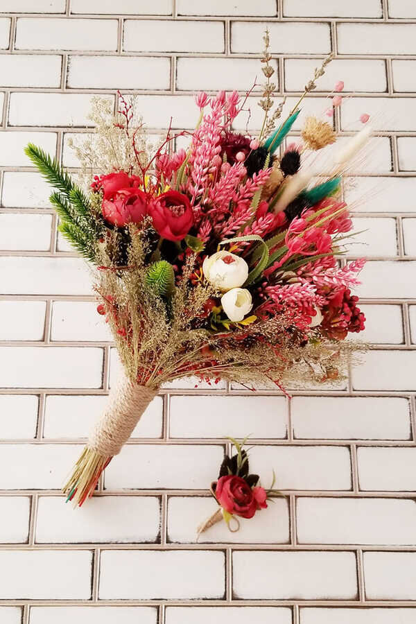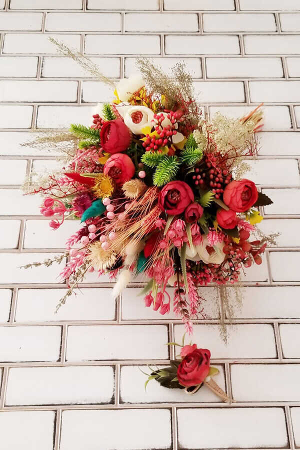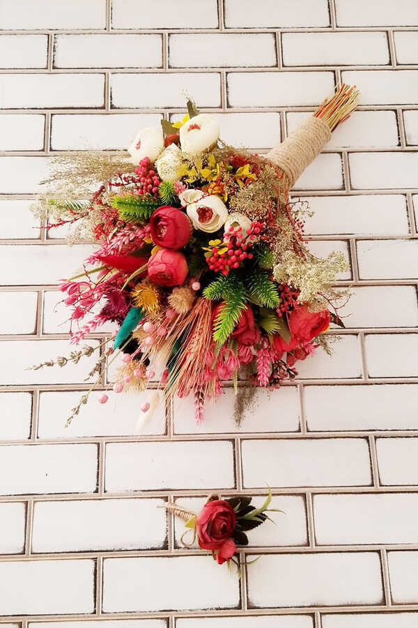 Sanya Şakayık Güller ve Kuru Çiçek Gelin Buketi 2li Set;Gelin Çiçeği ve Damat Yaka ÇiçeğiSiparişleriniz aynı gün içinde kargoya verilir. Sanya Şakayık Güller ve Kuru Çiçek Gelin Buketi 2li Set stoklarımızda bulunmaktadır.Gelin Buketi, Gelin Çiçeği, 2018 Gelin Buketi Fiyatları, Gelin Eli, Kaliteli Gelin Çiçeği, Damat Yaka Çiçeği, Kuru Gelin Çiçeği, Kuru ÇiçekSanya Şakayık Güller ve Kuru Çiçek Gelin Buketi 2li Set Özellikleri;Buket Yüksekliği: 35 cmBuket Çapı: 35 cmÇiçek İçeriği: Birçok kuru ve yapay çiçek bir araya getirilerek tanzim edilmiştir.Paket içeriği: 1 adet gelin çiçeği ve damat yaka çiçeği Sanya Şakayık Güller ve Kuru Çiçek Gelin Buketi 2li Set; Gelin Çiçeği özenle tarafımızdan tanzim edilmiştir. Bu gelin çiçeğini elde edebilmek için piyasada 40-50tl ye satılan demetler bozularak bir araya getirilmiştir. Göz nuru ve emek ürünüdür. Gelin Çiçeği'nde kullanılan çiçekler kesinlikle; kağıt, köpük yada latekse değildir. Gelin Çiçeği 1. Sınıf kumaştan üretilmiş olup siz sakladığınız sürece bir ömür size arkadaşlık edecektir. Gelin buketlerimizde kesinlikle bozulma, dağılma, yıpranma vb. durumlar olmaz. Çiçekler özenle ahenk ve uyum içerisinde bir araya getirilmiştir. Gelin Buketleri tamamı ile kendi özel tasarımımızdır.Gelin Buketleri Kişiye özel hazırlandığı için iadesi alınamaz.