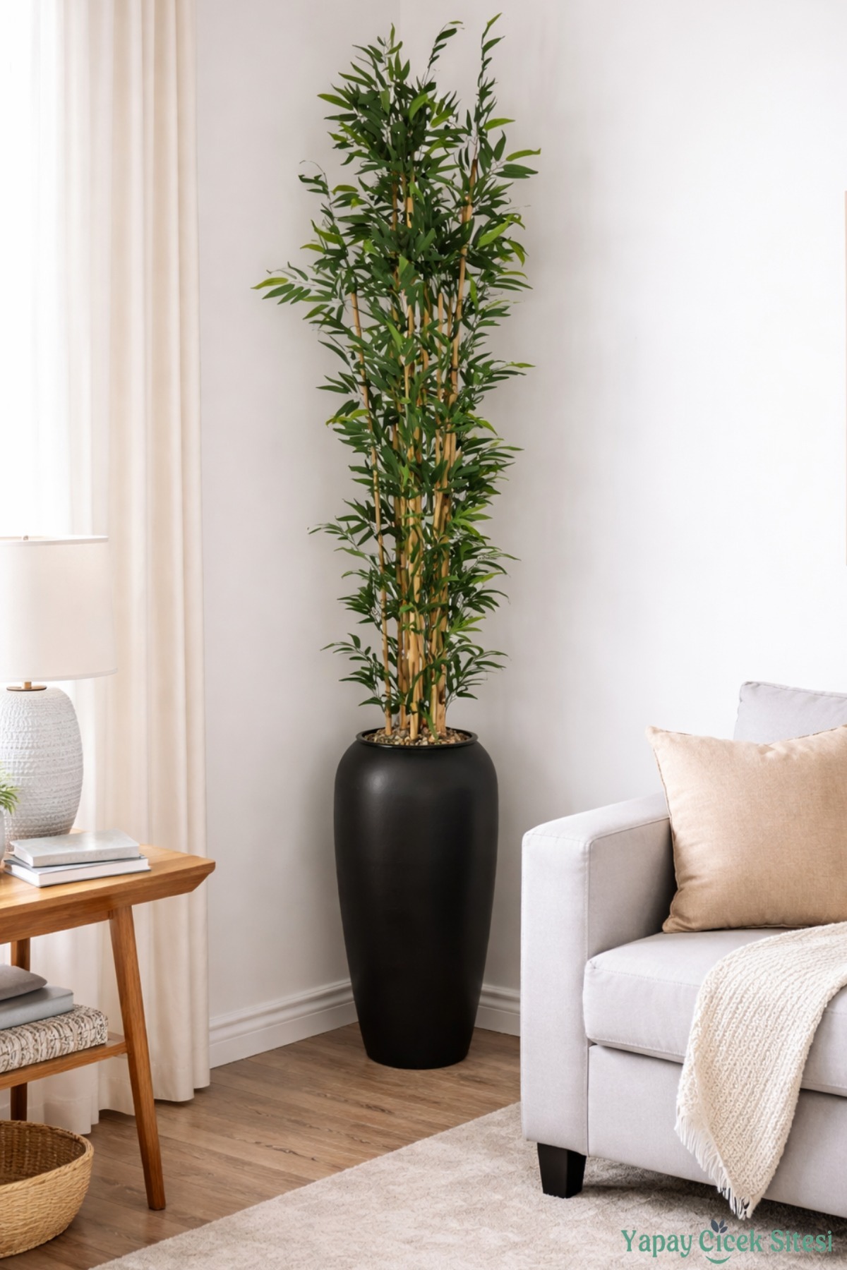 Siyah Fiber Saksıda Yapay Bambu Ağacı 305 cm