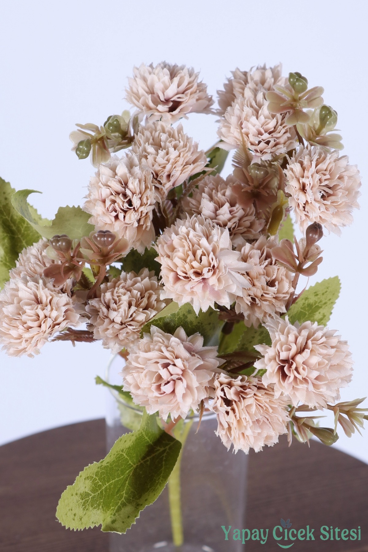 Malzeme: Kumaş dokulu yapay çiçek başları, plastik sap ve yapraklar