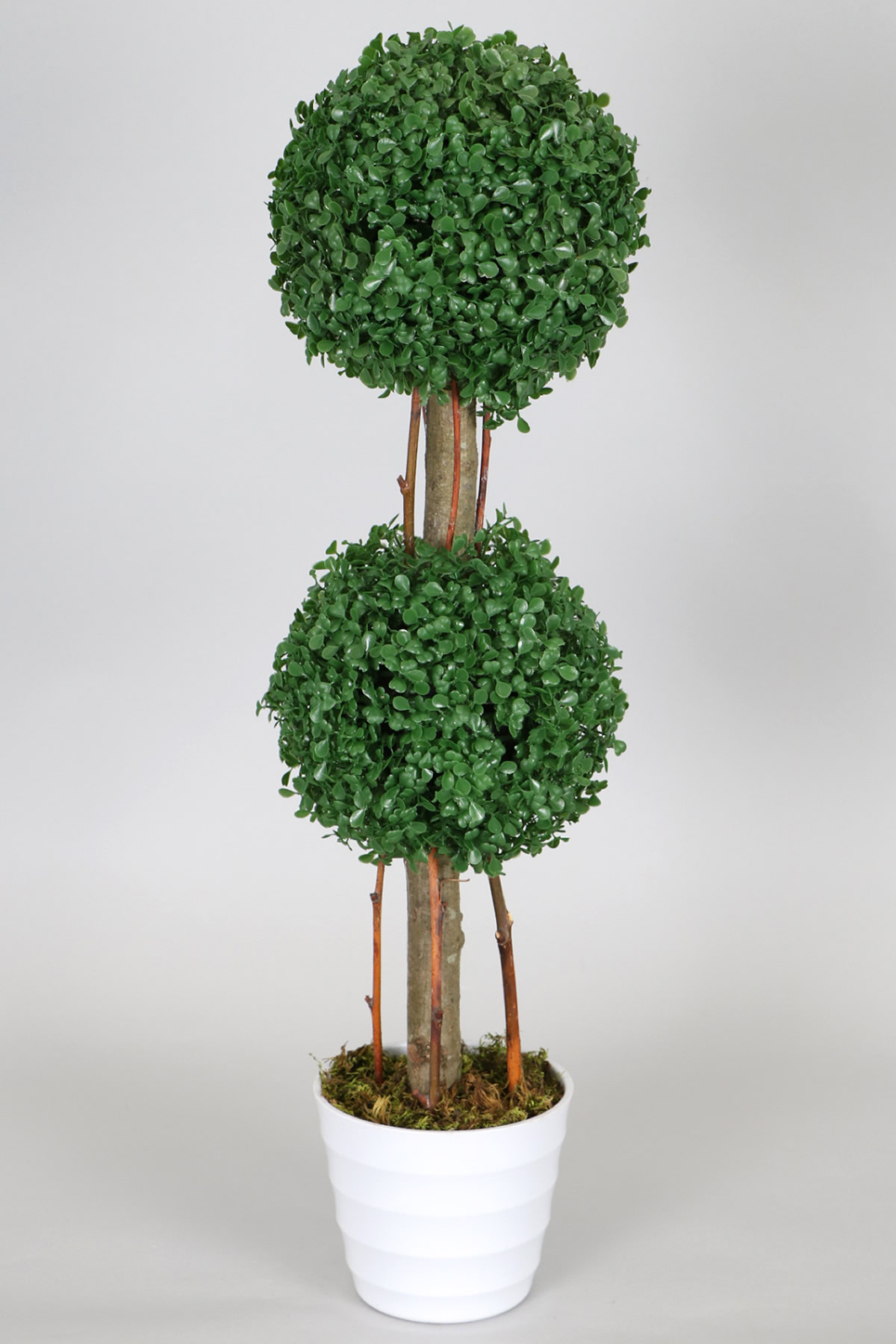Yapay 2li Şimşir Top 110cm (Dekoratif Ahşap Saksılı)