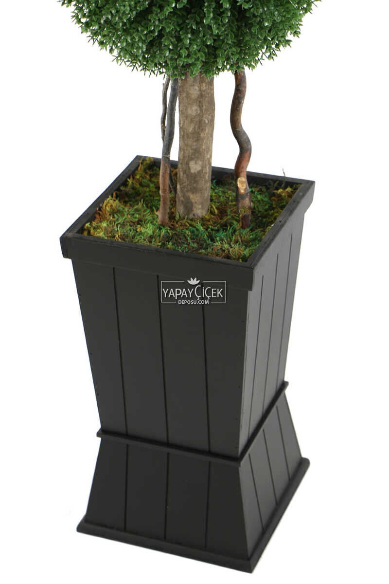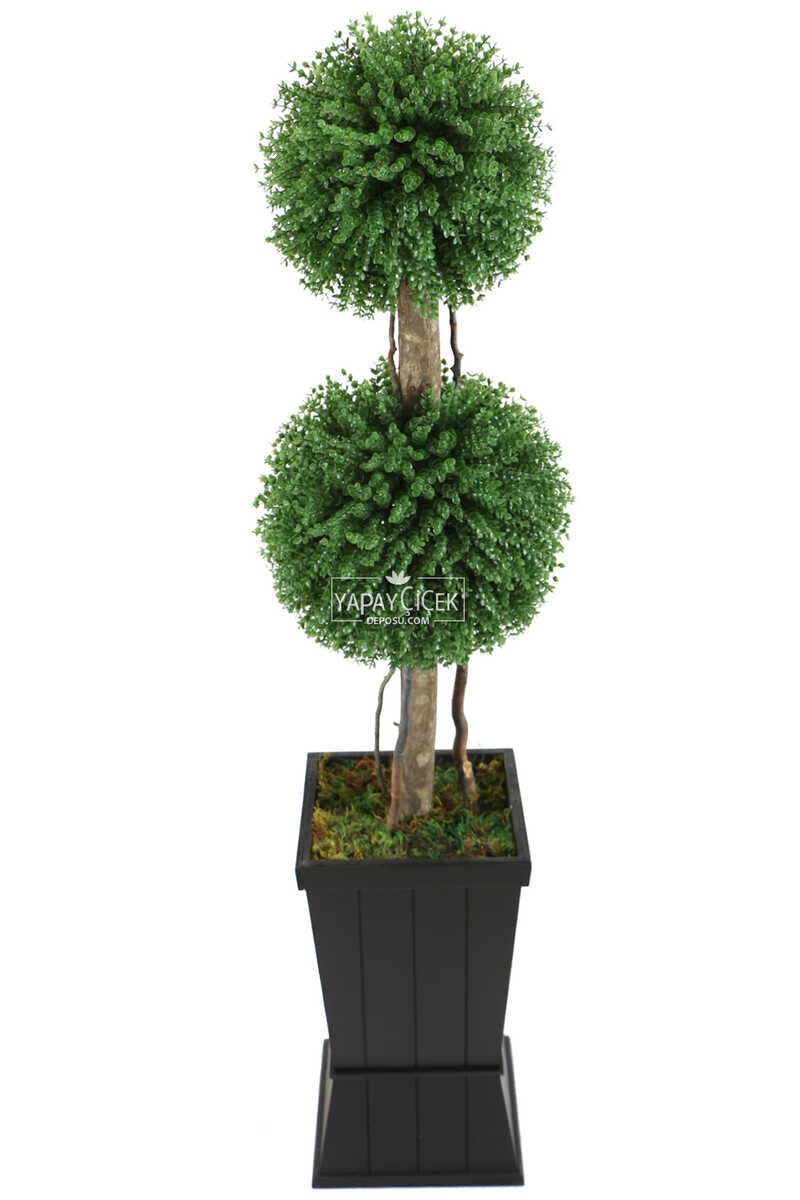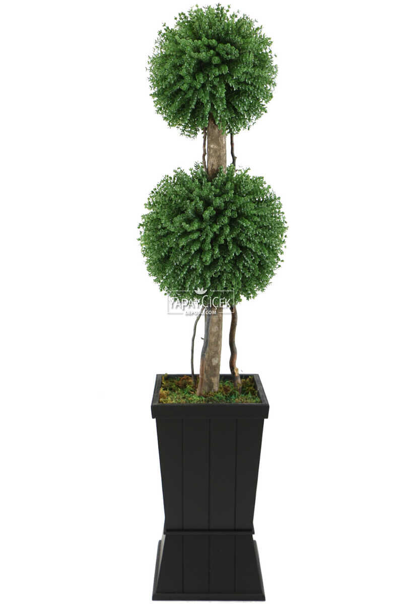 Yapay şimşir toplara, doğal gerçek ağaç sap takılarak dekoratif ahşap saksının içerisine konumlandırılmıştır. Kaliteli ahşap mdf saksı üzeri doğal yosun ile kaplanmıştır. Dekoratif amaçlı olarak her türlü ortamda kullanabilirsiniz. Dış mekan kullanıma uygundur. Her türlü hava şartında rahatlıkla kullanılabilir. Toplardaki yeşillik sürgünler U.V. katkılı 1.sınıf hammadde kullanılarak üretilmiştir. Güneşte renk değişimi ve bozulma olmaz. Toplarda 2 yıl garanti , üretici firma tarafından verilmiştir.
