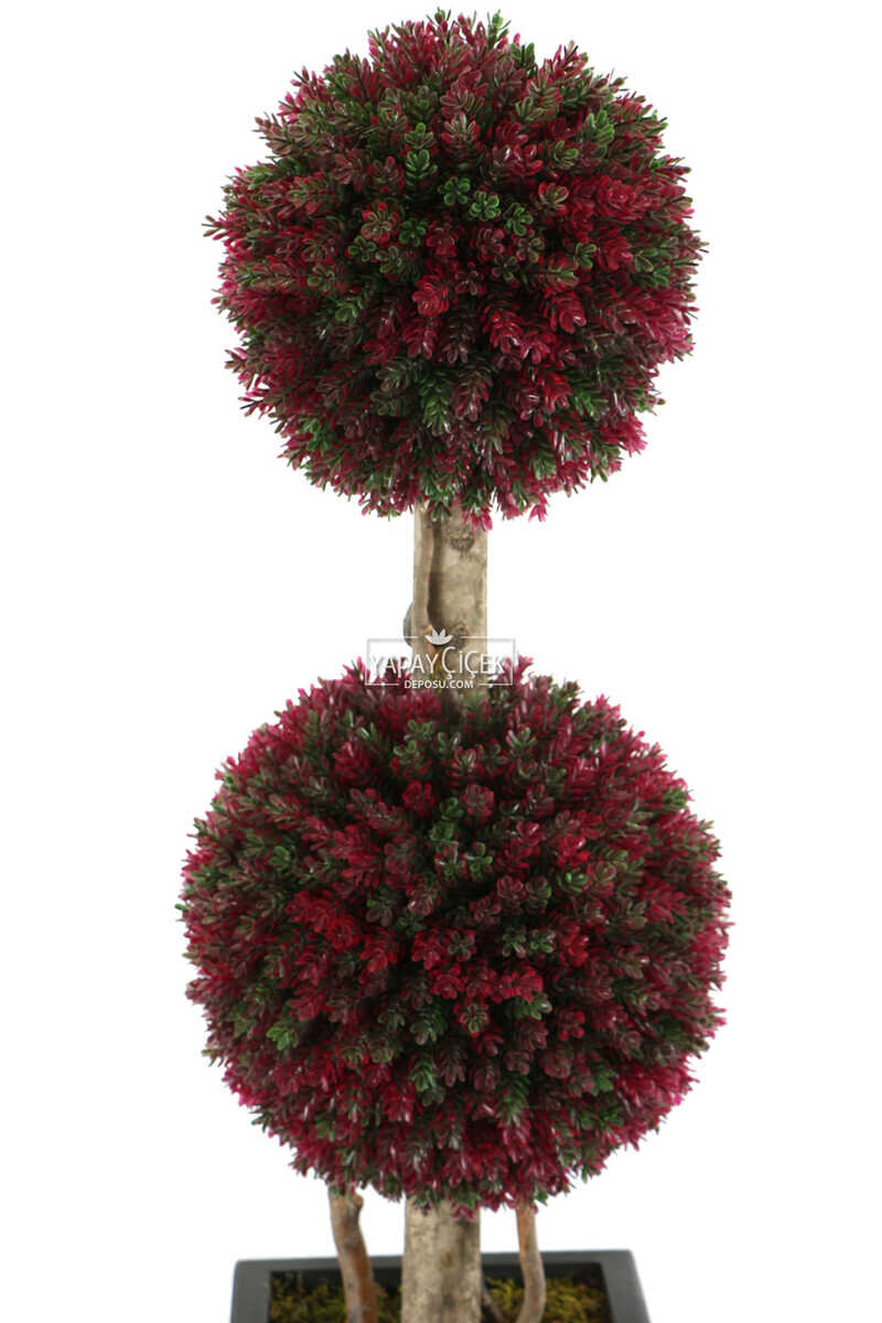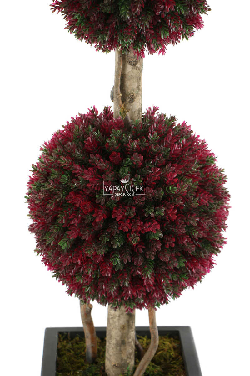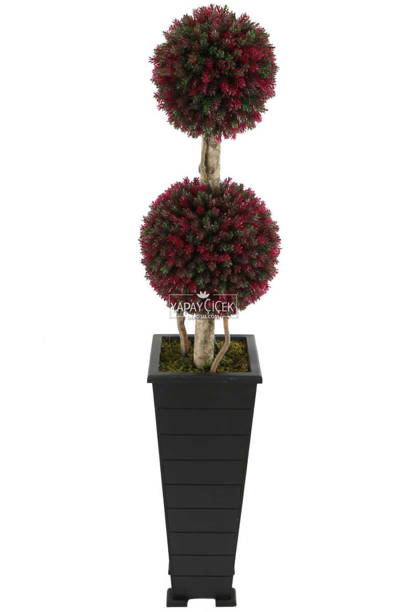 Yapay şimşir toplara, doğal gerçek ağaç sap takılarak dekoratif ahşap saksının içerisine konumlandırılmıştır. Kaliteli ahşap mdf saksı üzeri doğal yosun ile kaplanmıştır. Dekoratif amaçlı olarak her türlü ortamda kullanabilirsiniz. Dış mekan kullanıma uygundur. Her türlü hava şartında rahatlıkla kullanılabilir. Toplardaki yeşillik sürgünler U.V. katkılı 1.sınıf hammadde kullanılarak üretilmiştir. Güneşte renk değişimi ve bozulma olmaz. Toplarda 2 yıl garanti , üretici firma tarafından verilmiştir.