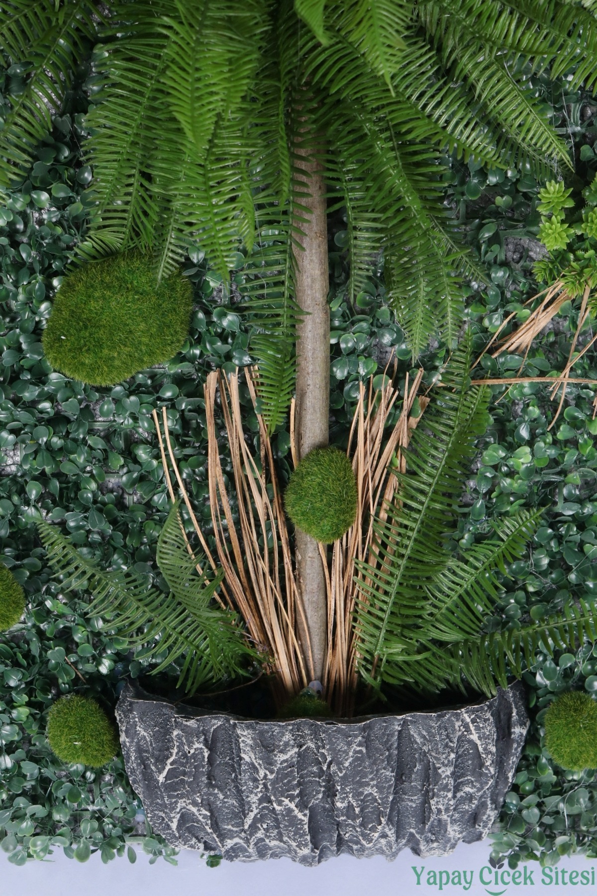Doğanın huzur veren yeşilini, bakım zahmetine katlanmadan yaşam alanlarınıza taşıyın! Yapay Çiçek Sitesi güvencesiyle hazırlanan bu özel tasarım duvar paneli, mekanınıza derinlik ve canlılık katmak için tasarlandı.