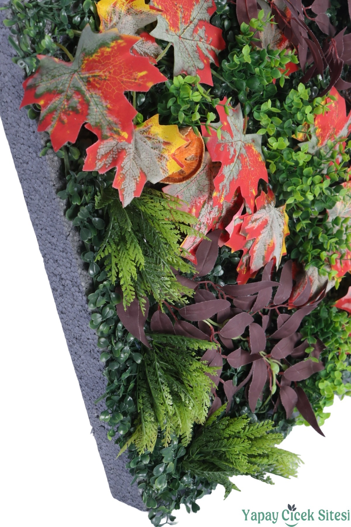 • Zengin ve Katmanlı Görünüm: 3 cm kalınlığındaki dayanıklı EPS strafor köpük üzerine titizlikle sabitlenen bitkiler, toplamda 10 cm'lik bir derinlik oluşturur. Bu hacimli yapı, sıradan düz panellere göre çok daha gerçekçi ve premium bir görünüm sunar.