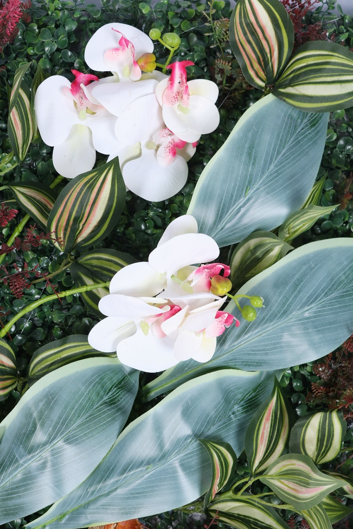 • Doğal Çeşitlilik: Panel içerisinde kullanılan egzotik palmiye yaprakları, sarmaşıklar, eğrelti otları ve yosun detayları, gerçek bir "Dikey Bahçe" illüzyonu yaratır.