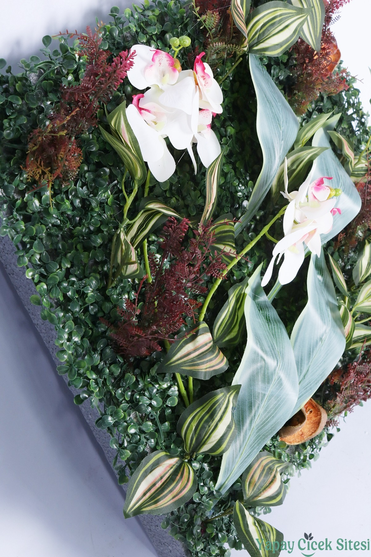 • Zengin ve Katmanlı Görünüm: 3 cm kalınlığındaki dayanıklı EPS strafor köpük üzerine titizlikle sabitlenen bitkiler, toplamda 10 cm'lik bir derinlik oluşturur. Bu hacimli yapı, sıradan düz panellere göre çok daha gerçekçi ve premium bir görünüm sunar.