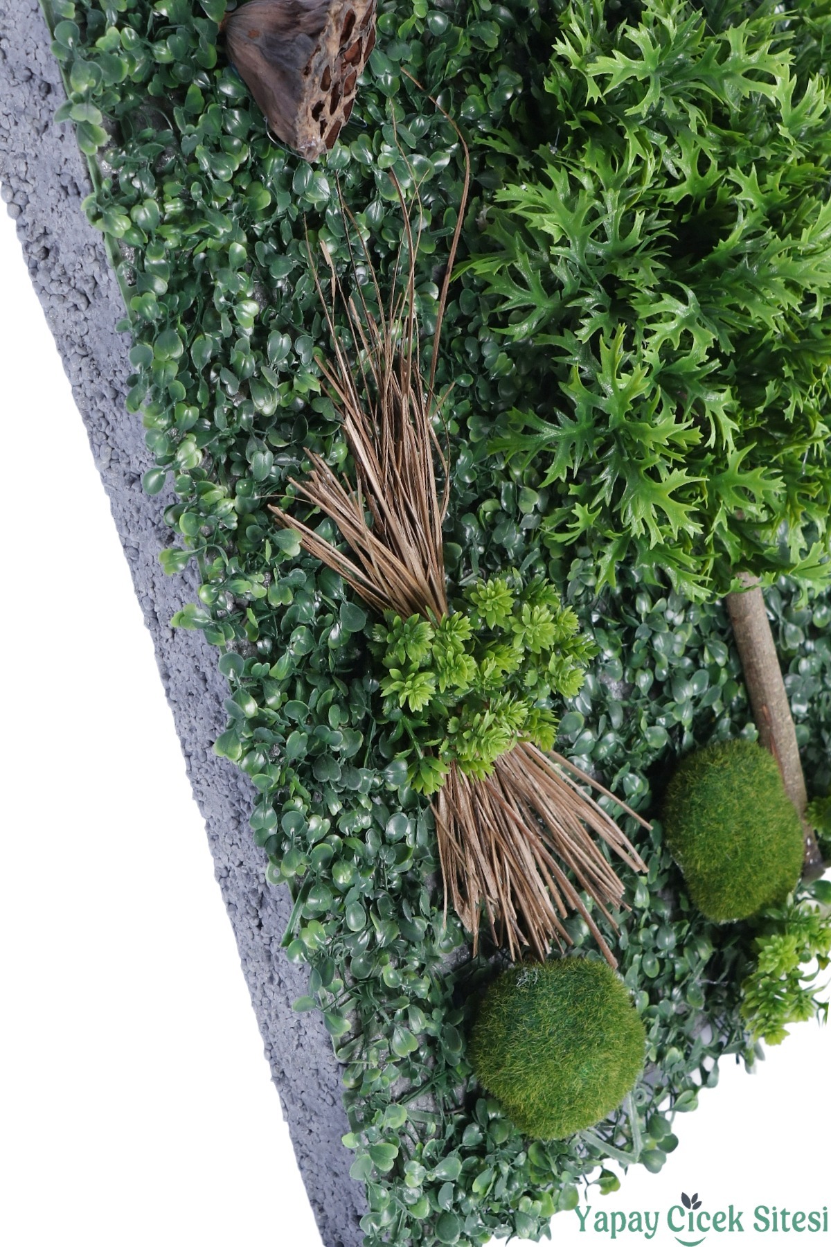 Doğanın huzur veren yeşilini, bakım zahmetine katlanmadan yaşam alanlarınıza taşıyın! Yapay Çiçek Sitesi güvencesiyle hazırlanan bu özel tasarım duvar paneli, mekanınıza derinlik ve canlılık katmak için tasarlandı.