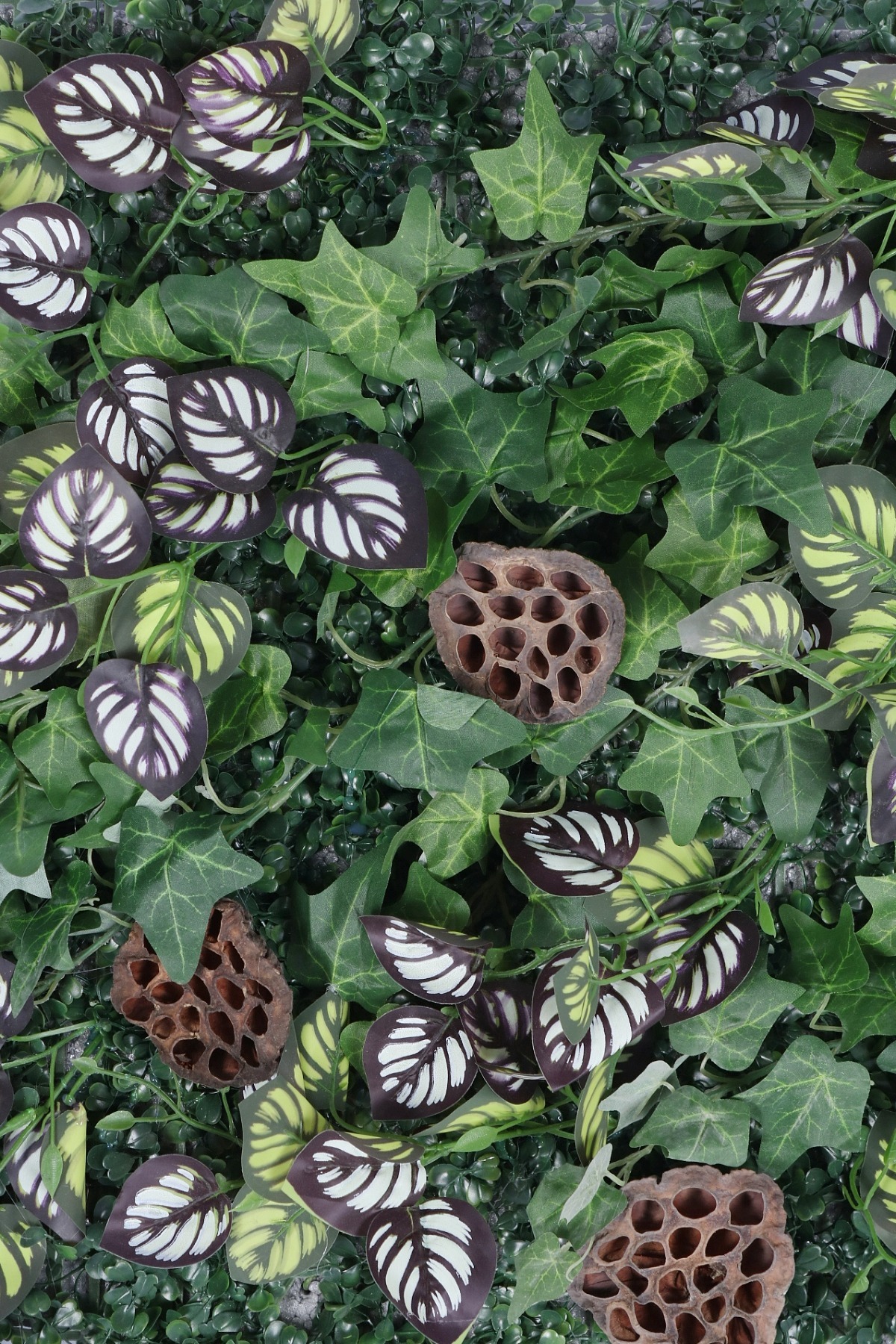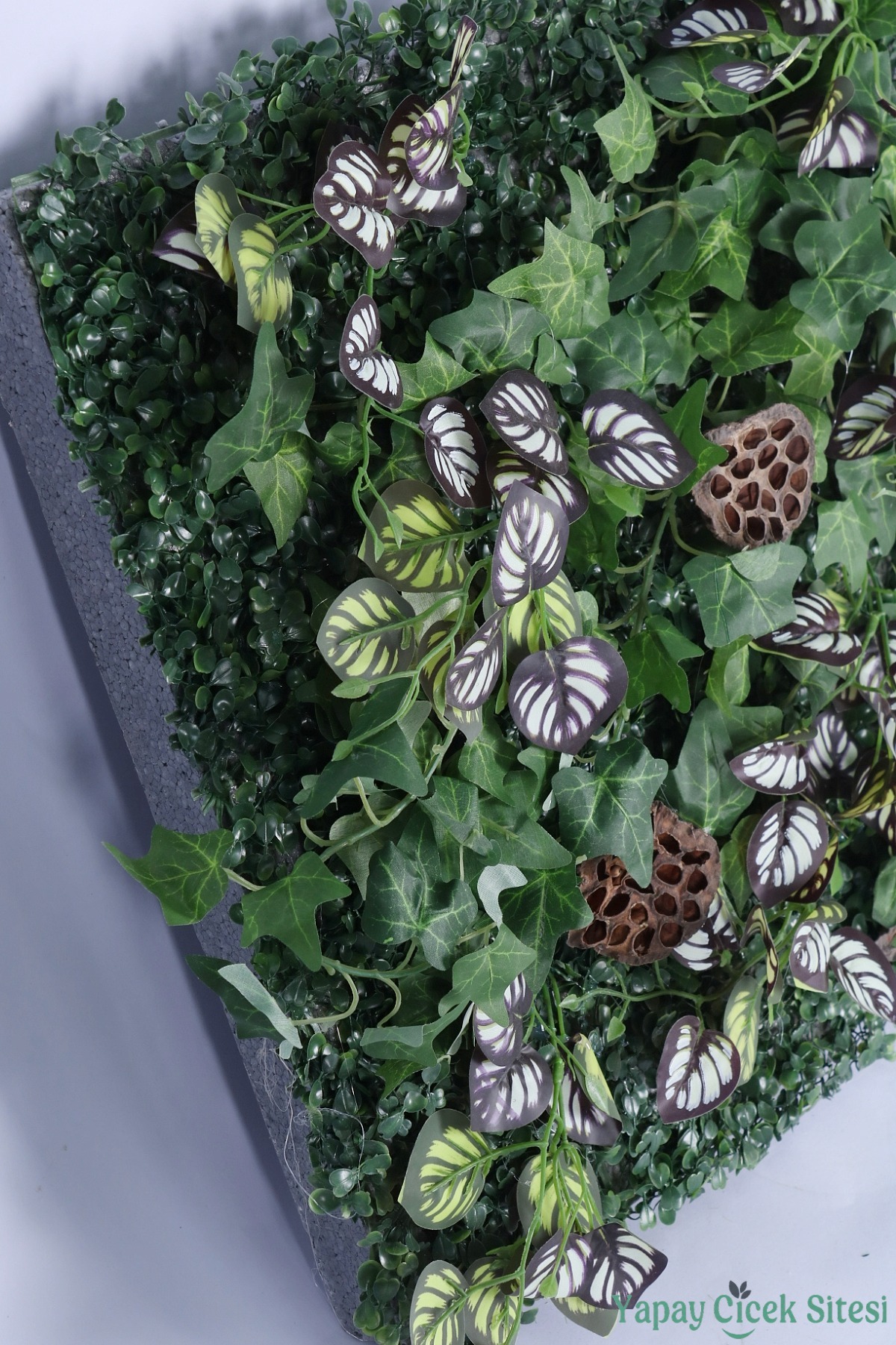 • Zengin ve Katmanlı Görünüm: 3 cm kalınlığındaki dayanıklı EPS strafor köpük üzerine titizlikle sabitlenen bitkiler, toplamda 10 cm'lik bir derinlik oluşturur. Bu hacimli yapı, sıradan düz panellere göre çok daha gerçekçi ve premium bir görünüm sunar.