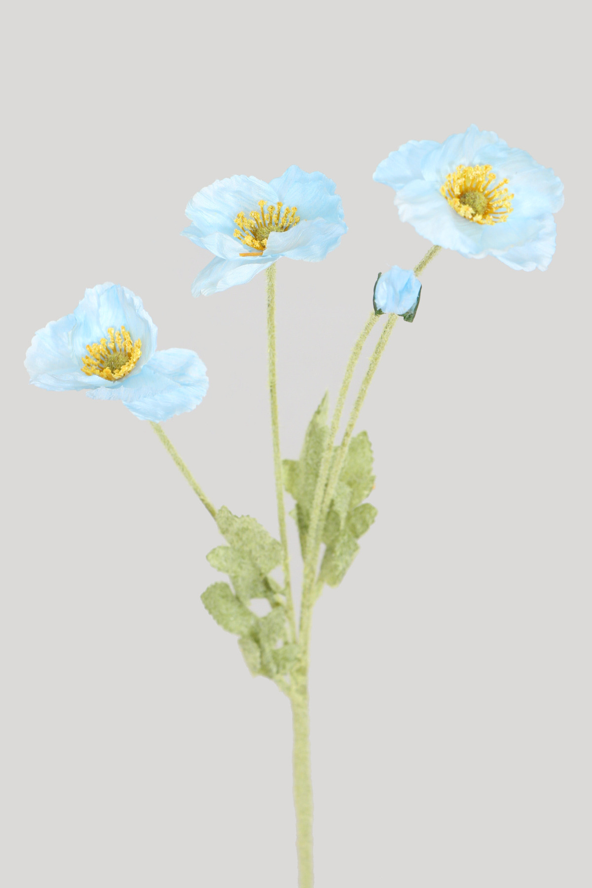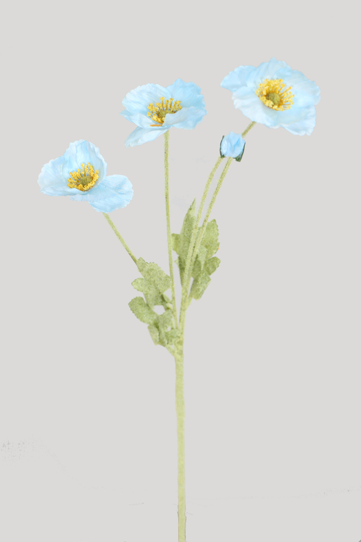 Yapay Çiçek 4lü Gelincik Dalı 60 cm Açık Mavi