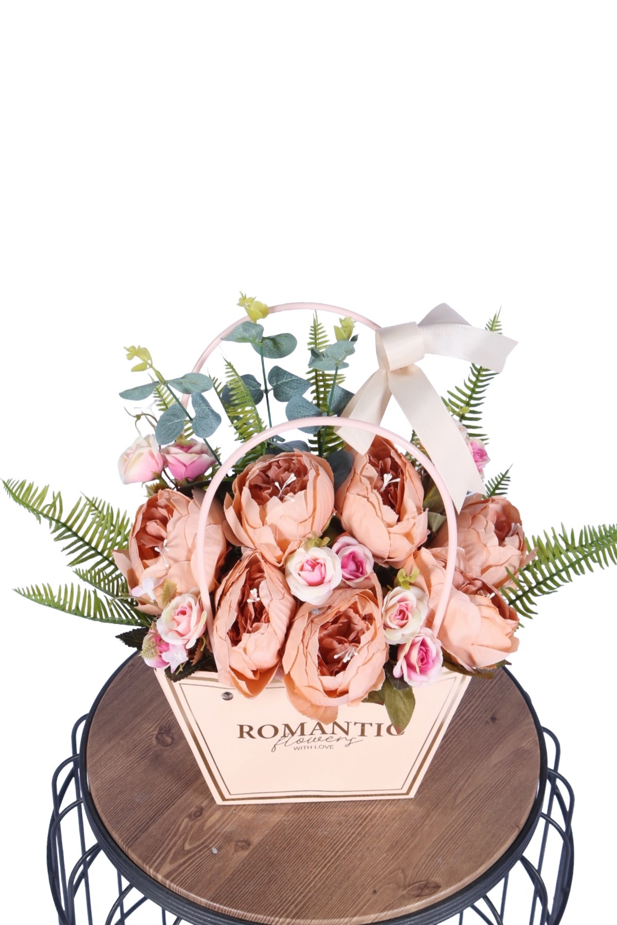 Dekoratif çantalı aranjman çeşitlerimizle sevdiklerinizi şımartın