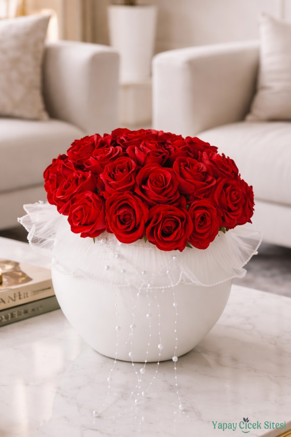 Sevginizi en zarif şekilde ifade etmek için hazırlanan 28 güllü kaliteli kafiye gül aranjmanı, kız isteme ve söz organizasyonlarının vazgeçilmez masa çiçeğidir. Özenle seçilmiş canlı kırmızı güller, şık beyaz vazoda zarif tül ve inci detaylarıyla tamamlanarak hem romantik hem de asil bir görünüm sunar.
