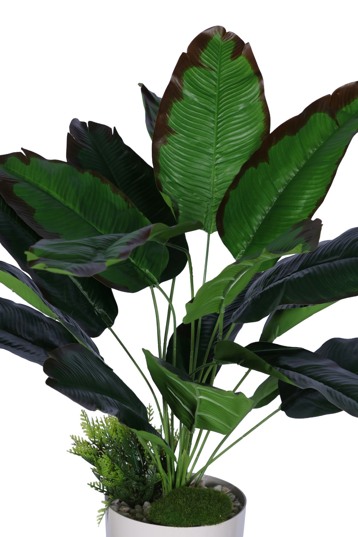 Zengin Alt Detay: Bitkinin kök kısmında yer alan yapay sarmaşık ve küçük yaprak detayları, saksı içindeki görünümü dolgunlaştırarak boşlukları şık bir şekilde doldurur.