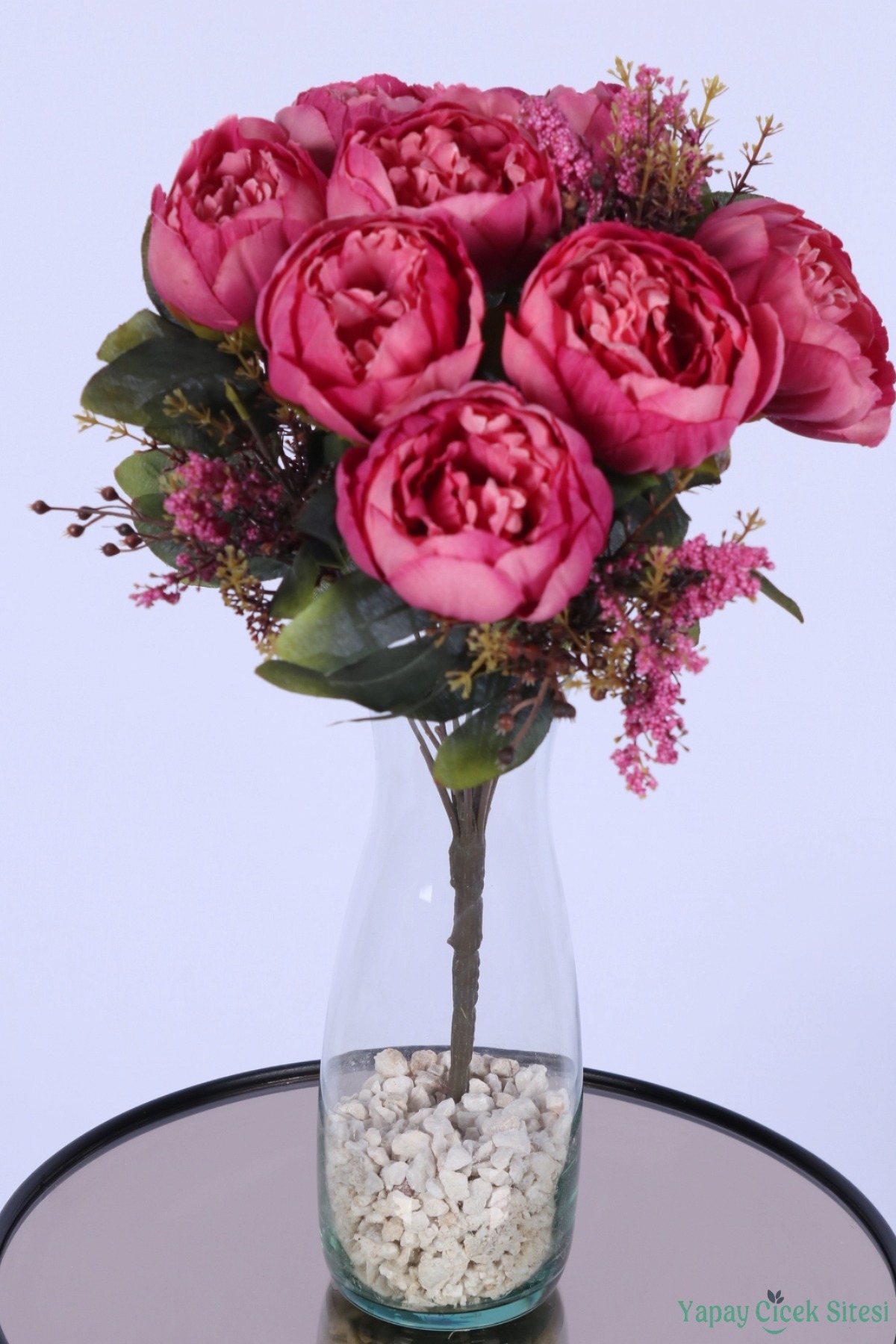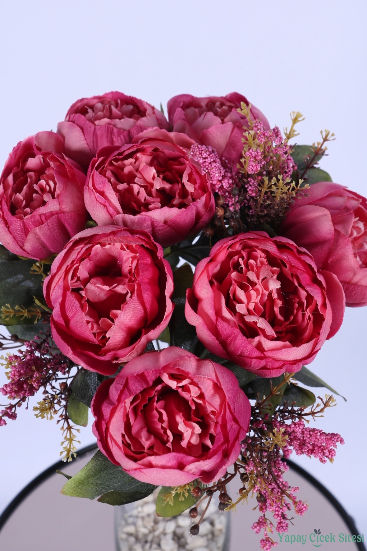 • Köpük cipsolu yapay şakayık gül demeti